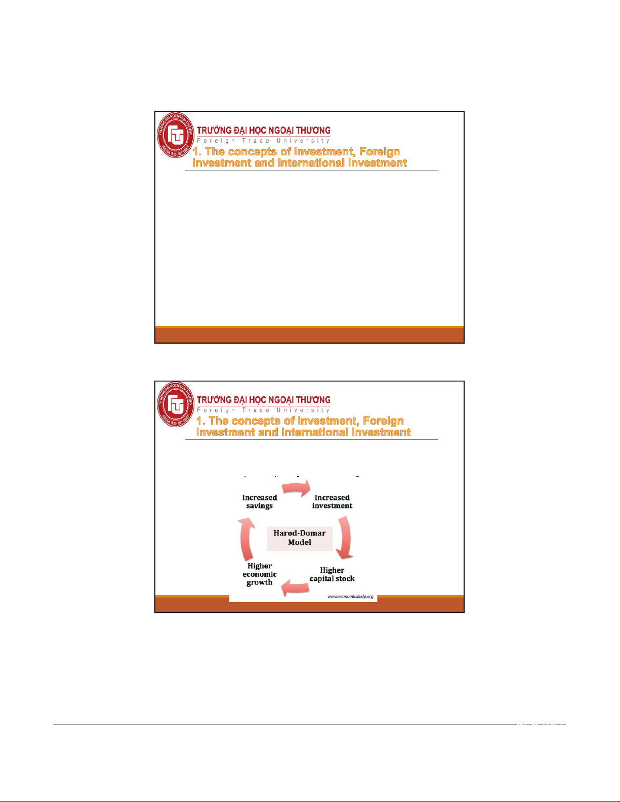 Harrod-Domar Model, developed by Hollis Chenery Ths.Nguyễn Hạ Liên Chi 16 8 10/18/2022 Charateristics of Investment Harrod-Domar Model g = k/ICOR