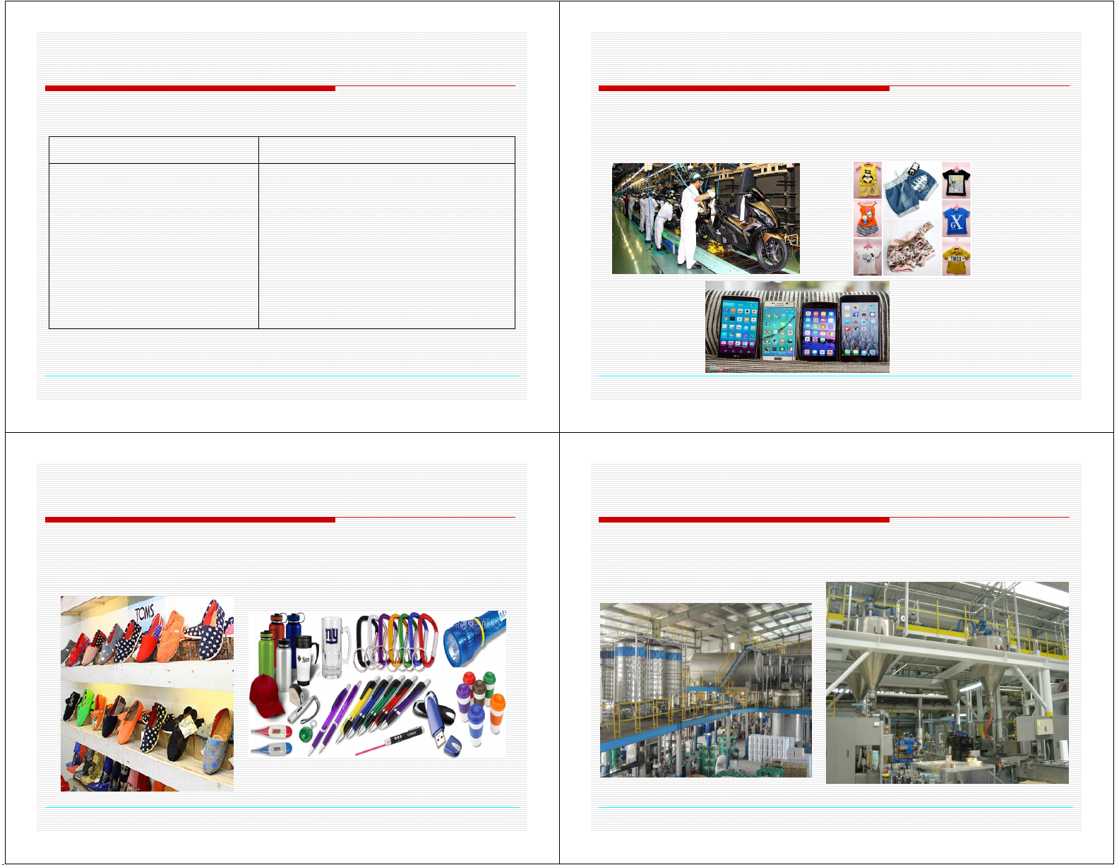 Coca-Cola, Pepsi-cola, Tribeco,… Building materials US. Gypsum, Southern steel,… Cement Sao mai, Hà tiên,.. Chemicals EI. Du pont, Nippon, Clothing