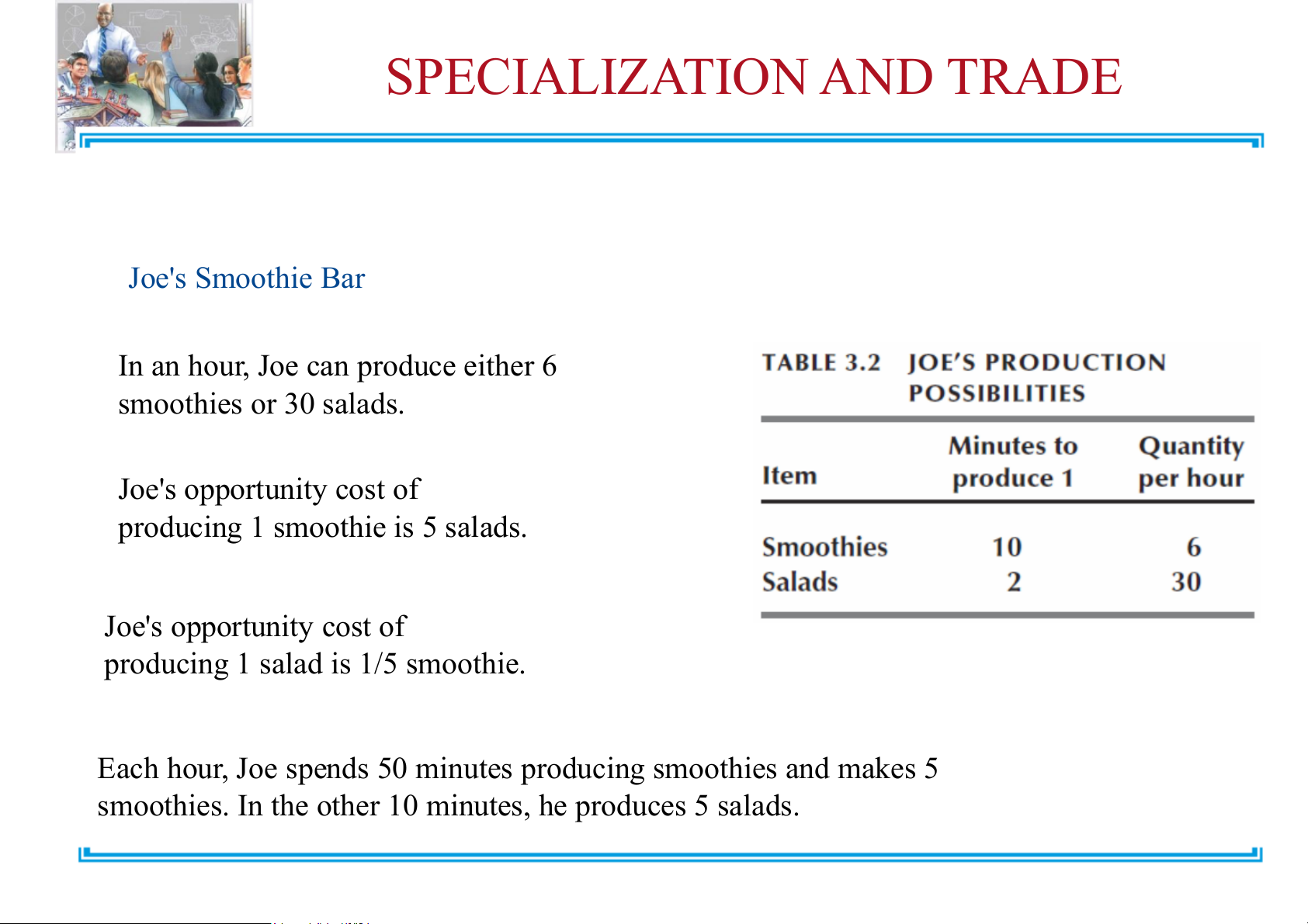 produces 15 smoothies and 15 salads. SPECIALIZATION AND TRADE Joe's Smoothie Bar