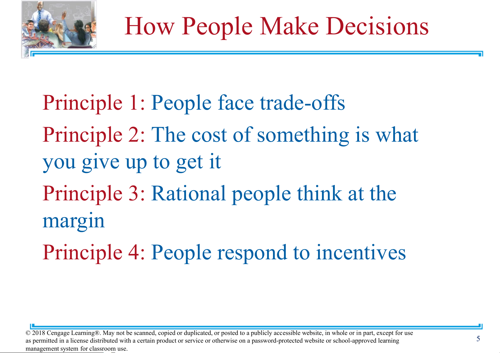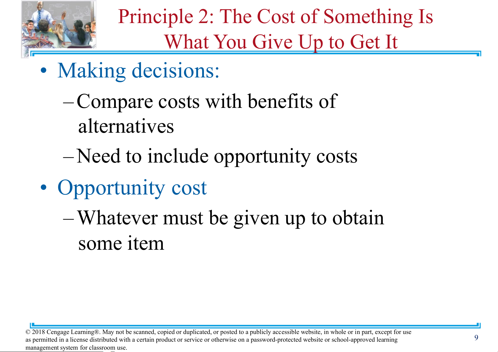Principle 2: The Cost of Something Is What You Give Up to Get It • Making decisions:
