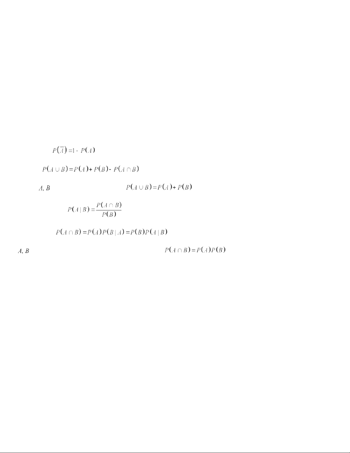 + Step 3: Find the system of events which is both mutually exclusive and collectively exhaustive (compute the complement if needed). + Step 4: Apply the formula. II. Probability rules 1. Complement rule: . 2. Addition rule: . n particular, if are mutually exclusive, then . 3. Conditional probability: . 4. Multiplication rule: Events