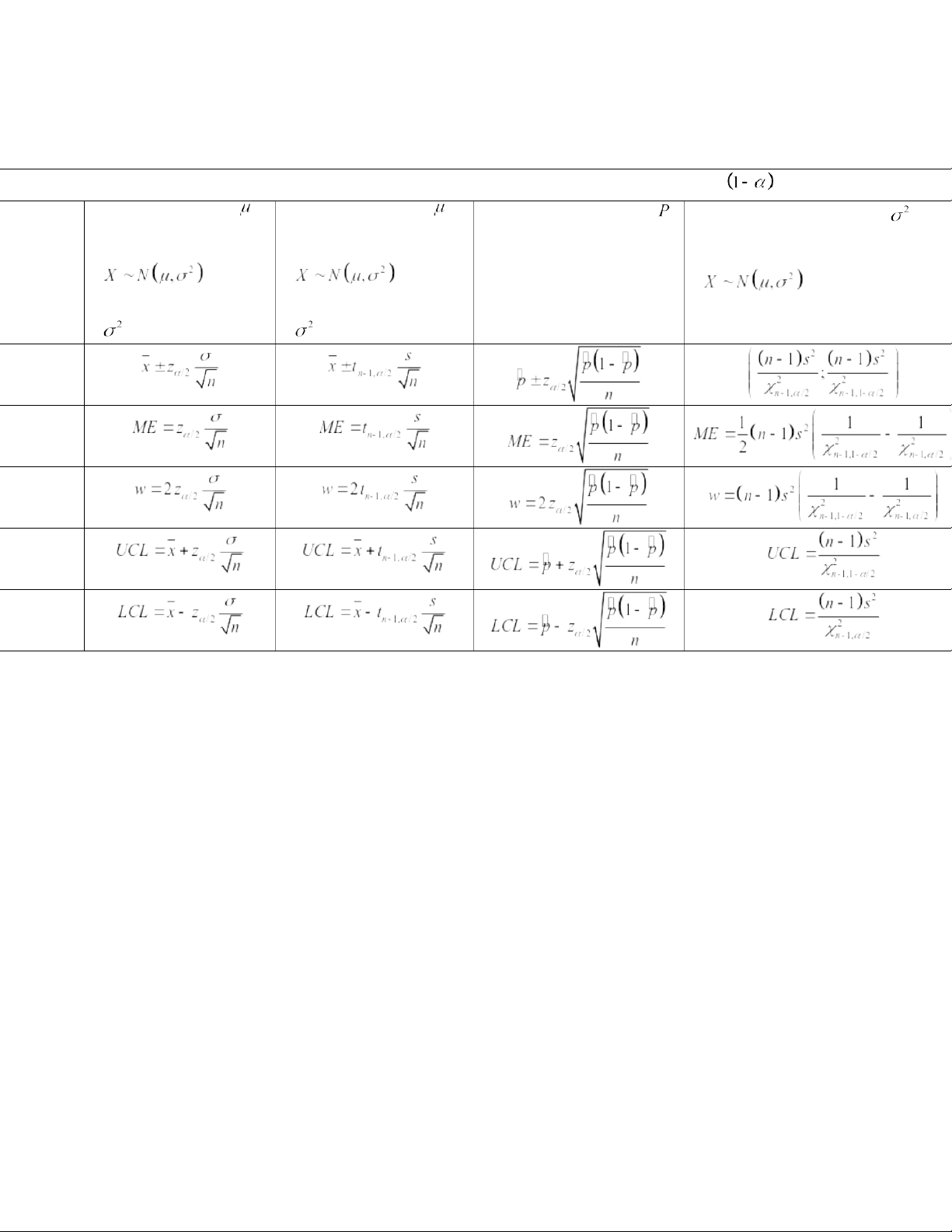 CHAPTER 5. CONFIDENCE INTERVAL ESTIMATION I. Formulas