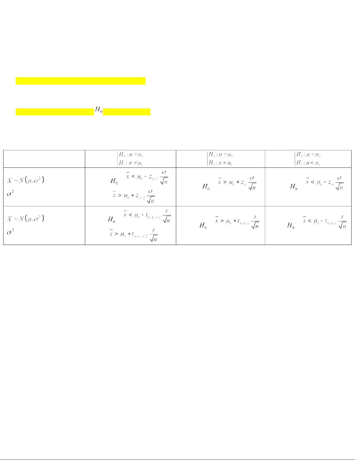 + Step 4: Random sample => conclusion II. Decistion rule For population mean (or n is large) Reject if Reject if Reject if is known or (or n is large) Reject if Reject if Reject if is unknown or For population proportion Reject if Reject if Reject if or For population variance Reject if Reject if Reject if or
