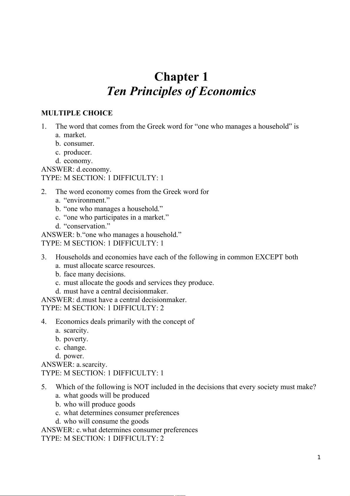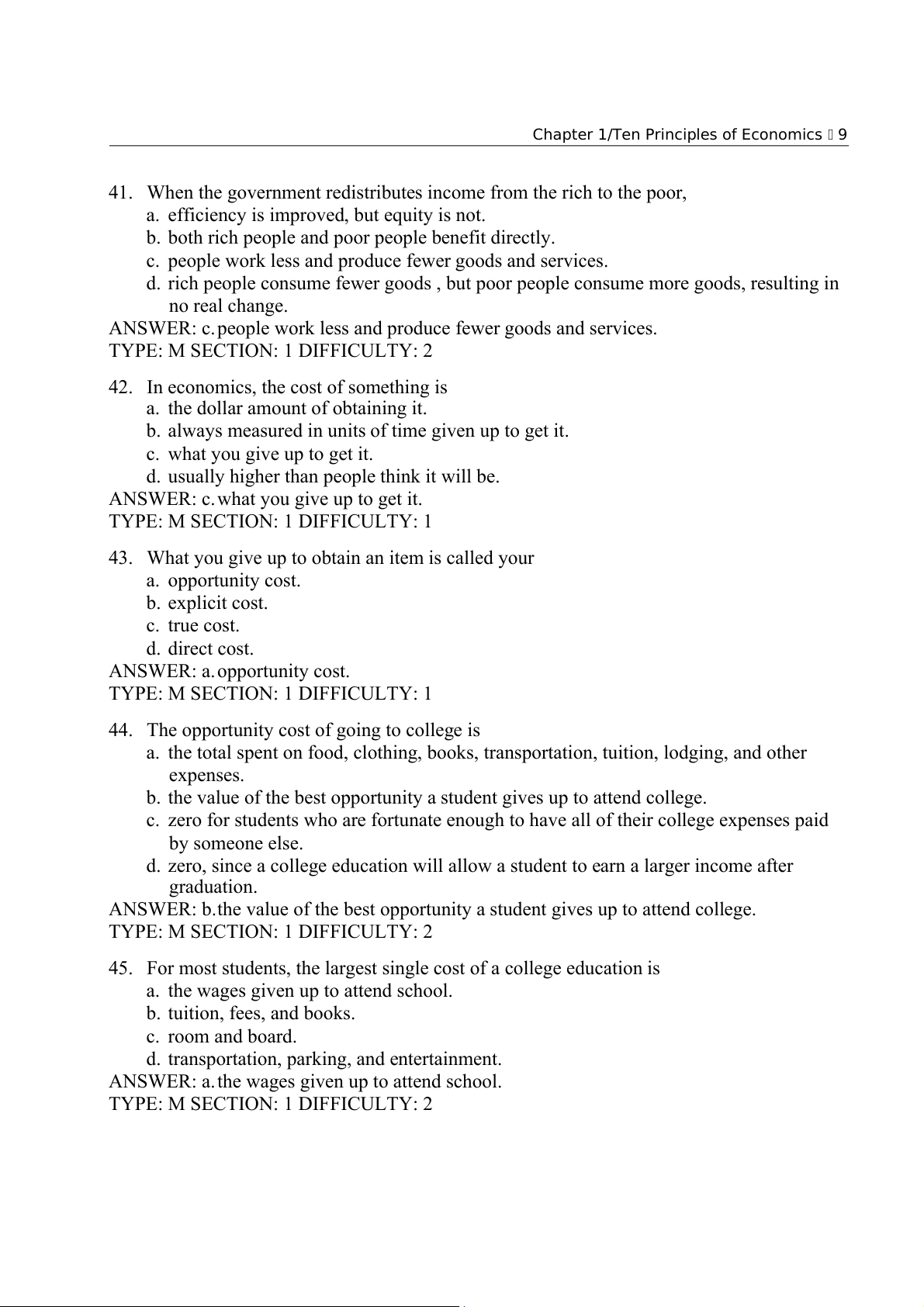 Ten Principles of Economics MULTIPLE CHOICE 1.