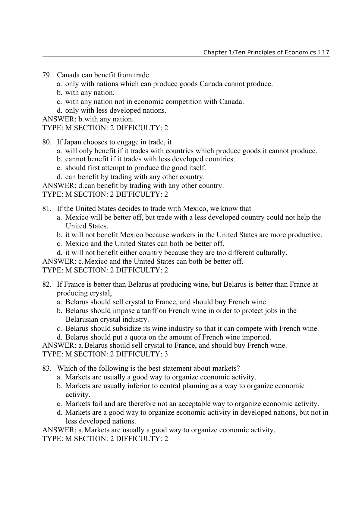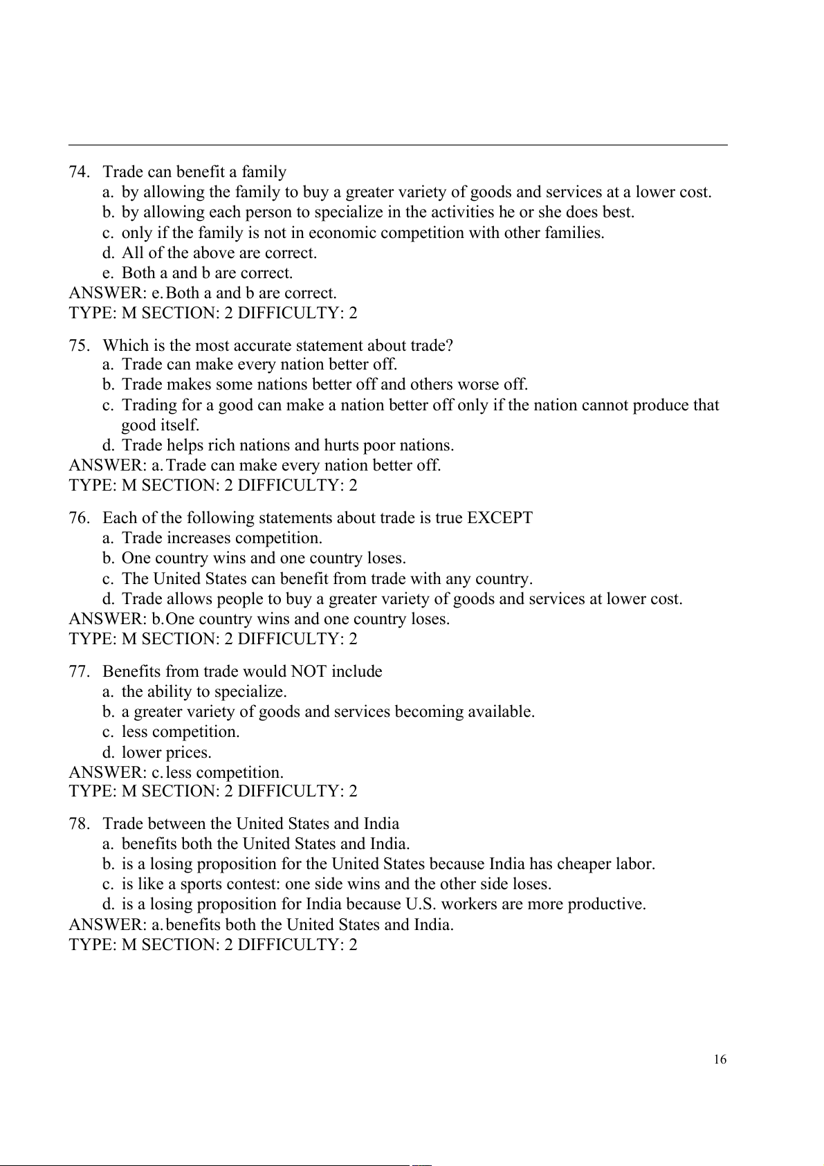 77. Benefits from trade would NOT include a. the ability to specialize.