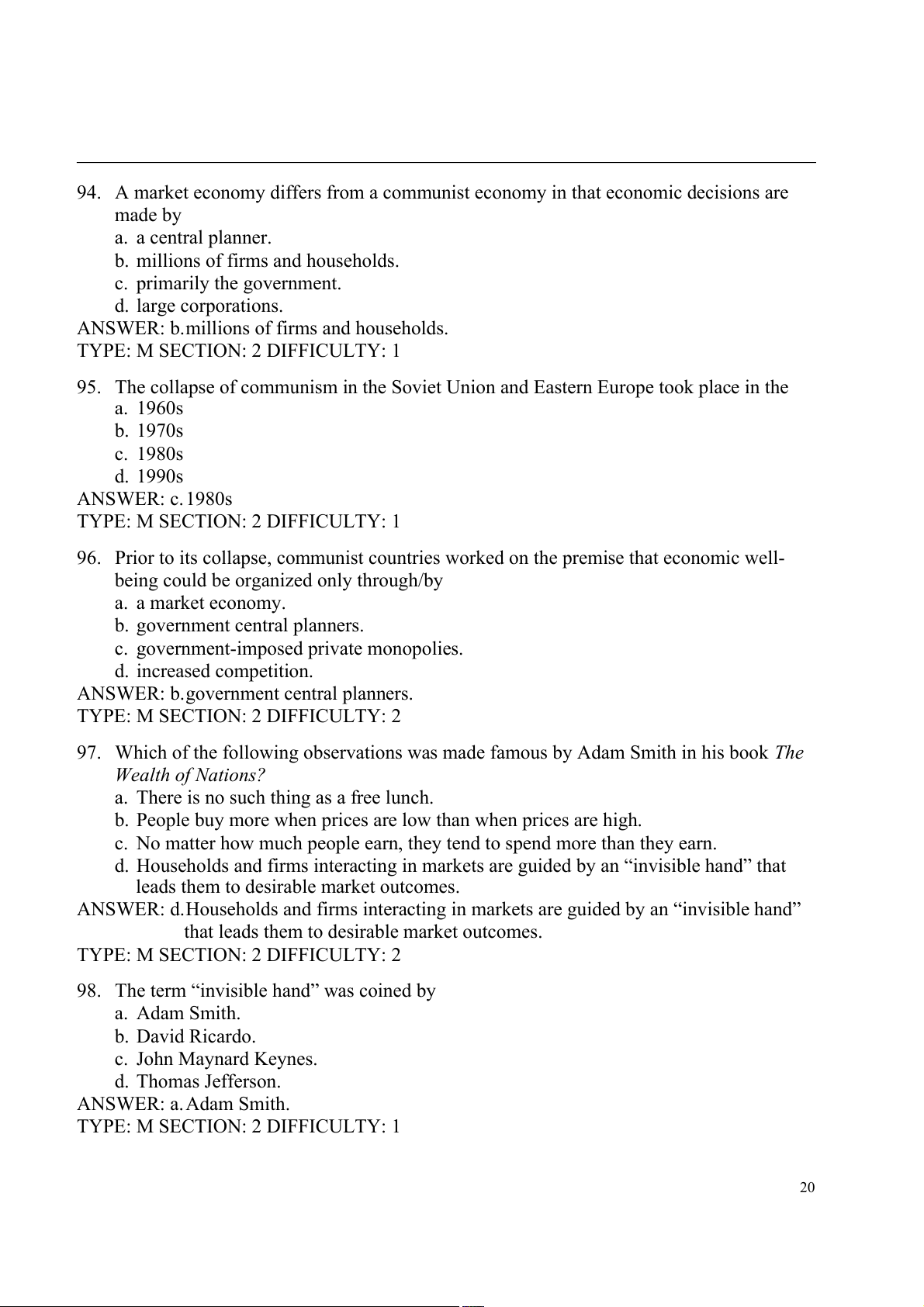 94. A market economy differs from a communist economy in that economic decisions are made by a. a central planner.