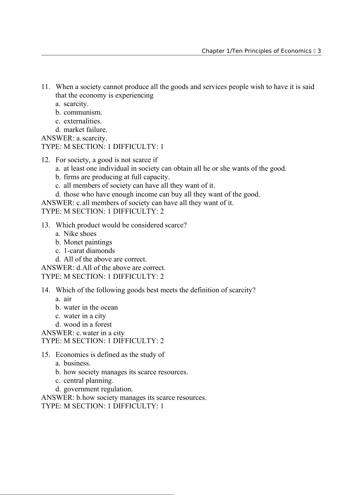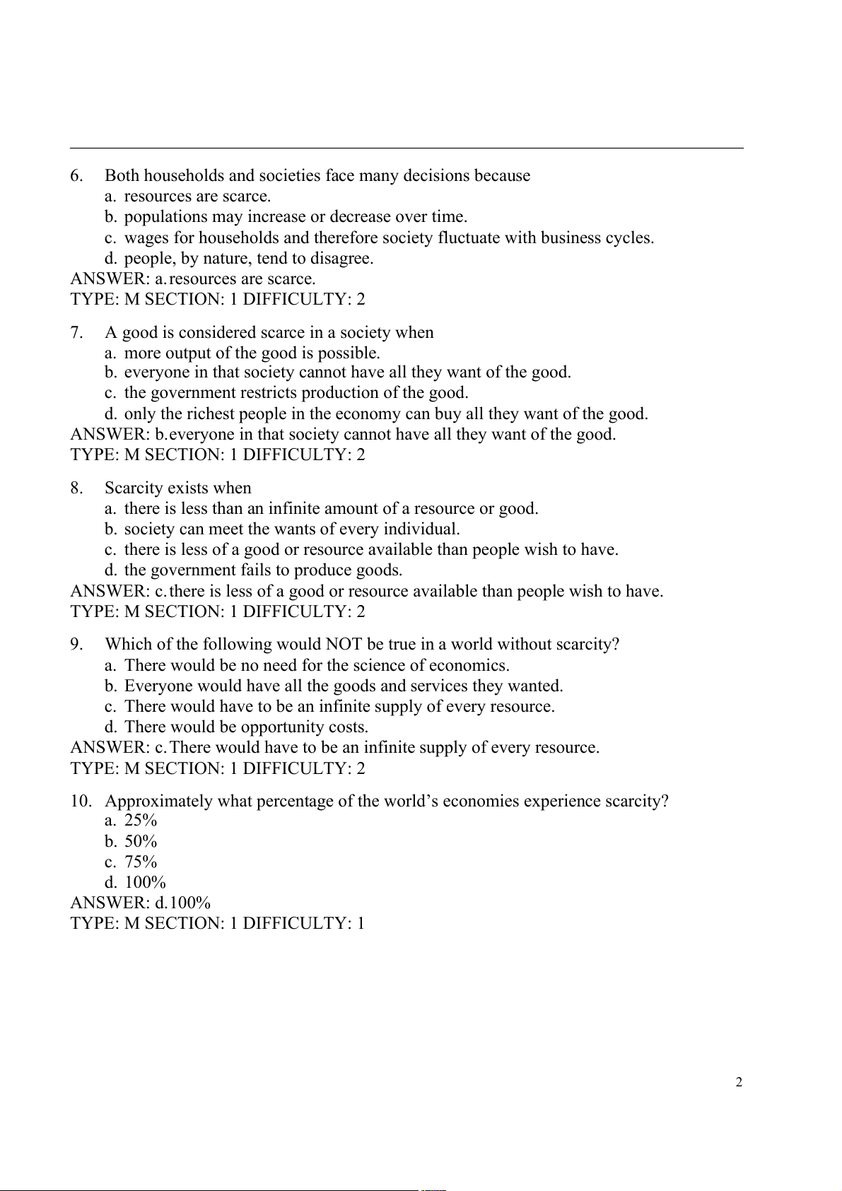 10. Approximately what percentage of the world’s economies experience scarcity? a. 25% b. 50% c. 75% d. 100% ANSWER: d.100%