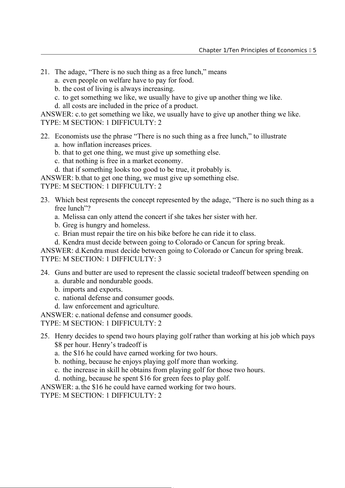 22. Economists use the phrase “There is no such thing as a free lunch,” to illustrate