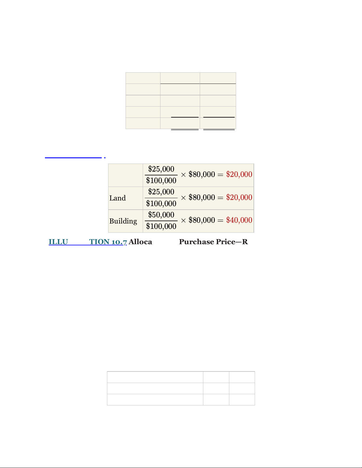 fair values (assuming specific identification of costs is impracticable), shown in Illustration 10.7. $25,000 Inventory × $80,000 = $20,000 $100,000 $25,000 Land × $80,000 = $20,000 $100,000 $50,000 Building × $80,000 = $40,000 $100,000