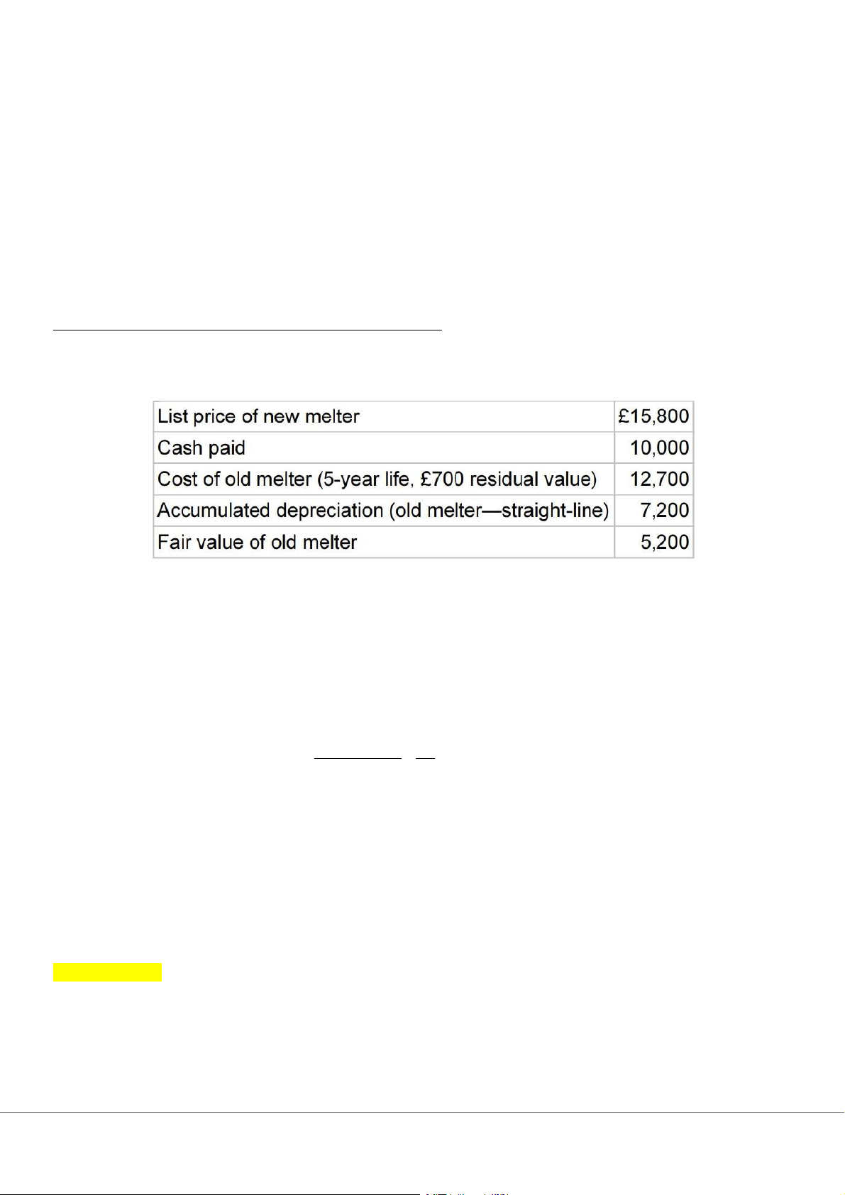 Cost of New meter = 10,000 + 5,200 = 15,200 Journal Entry Depreciation Expense Accumulated Depreciation – Melter 800 800 Melter 15,200