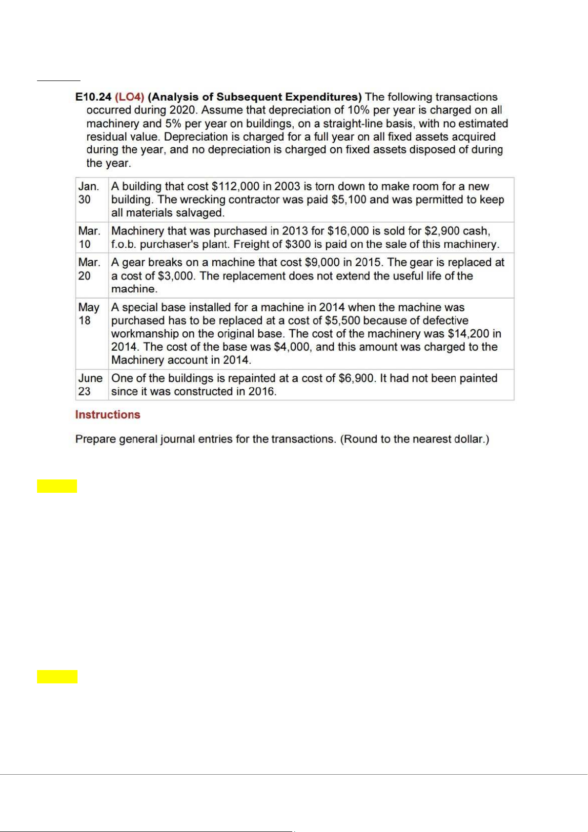 Accumulated Depreciation – Melter 8,000 Melter 12,700 Cash 10,000 E10.24 Jan. 30