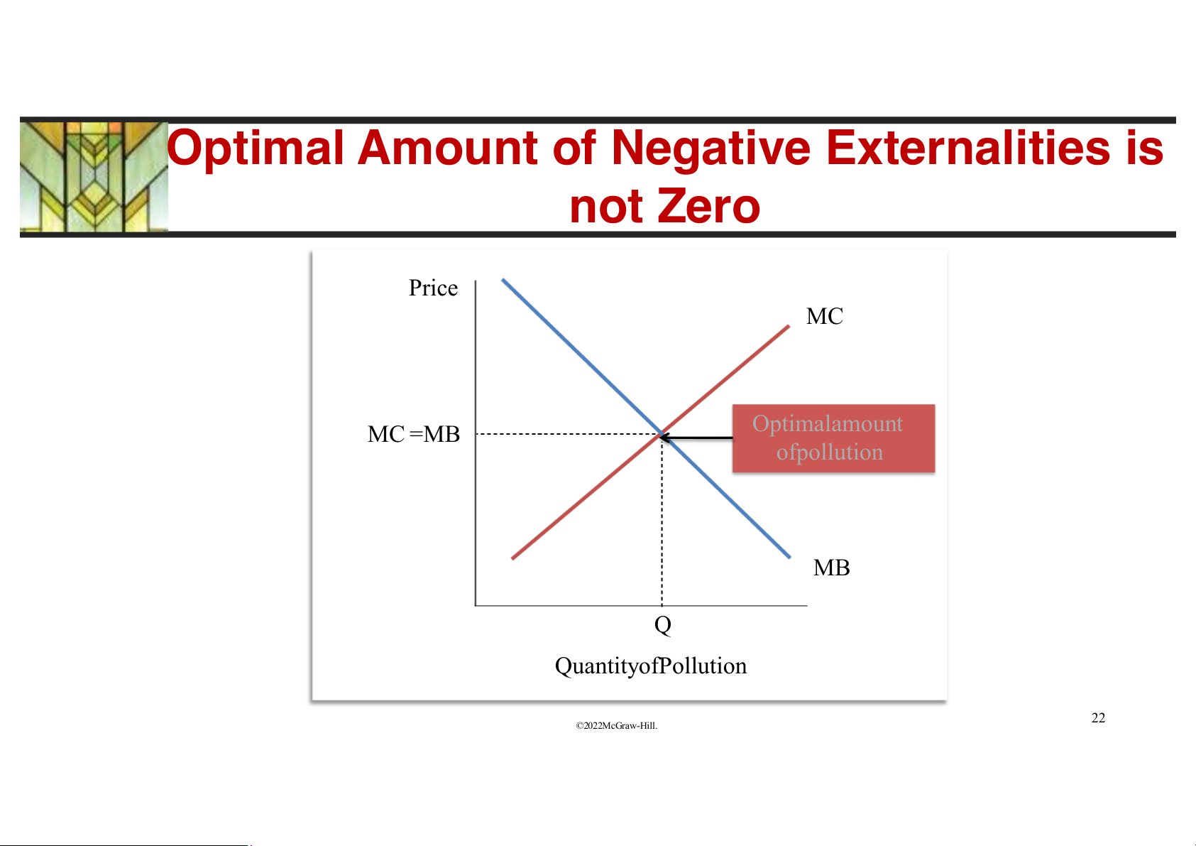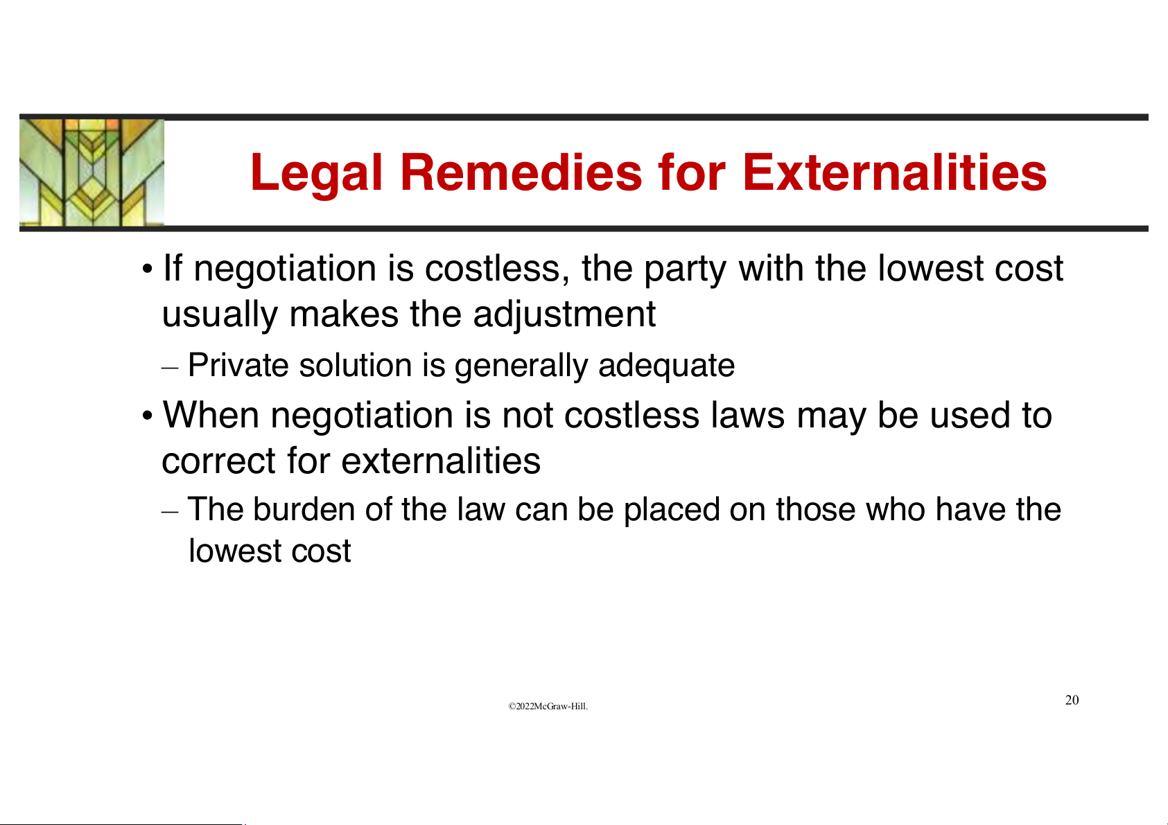 • The adjustment to the externality is usually done by the party with the lowest cost 13 ©2022 McGraw-Hill.