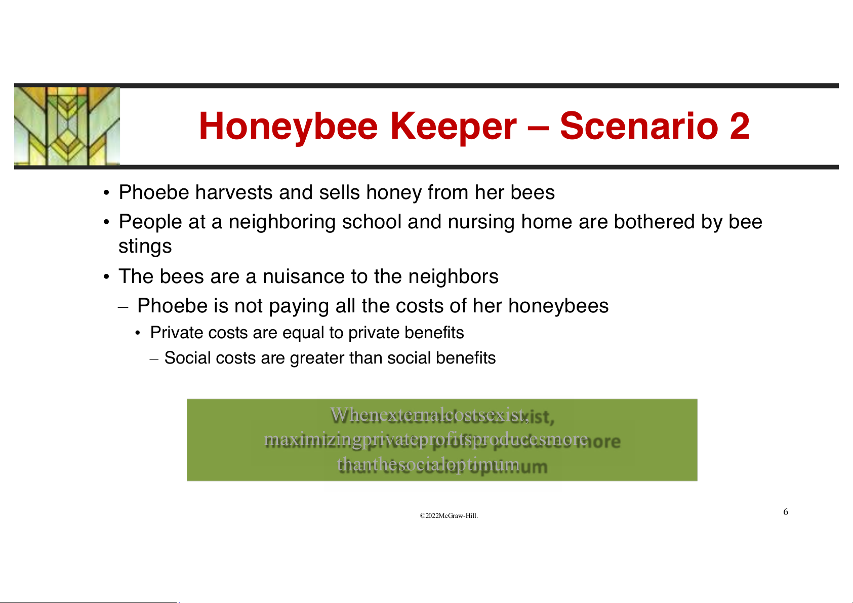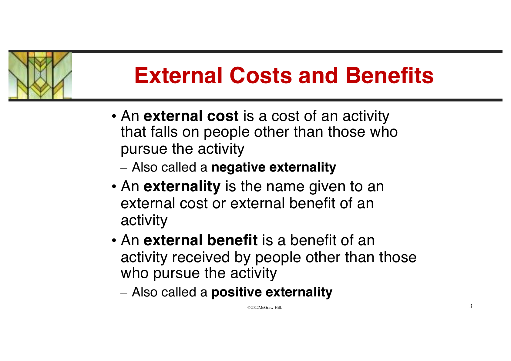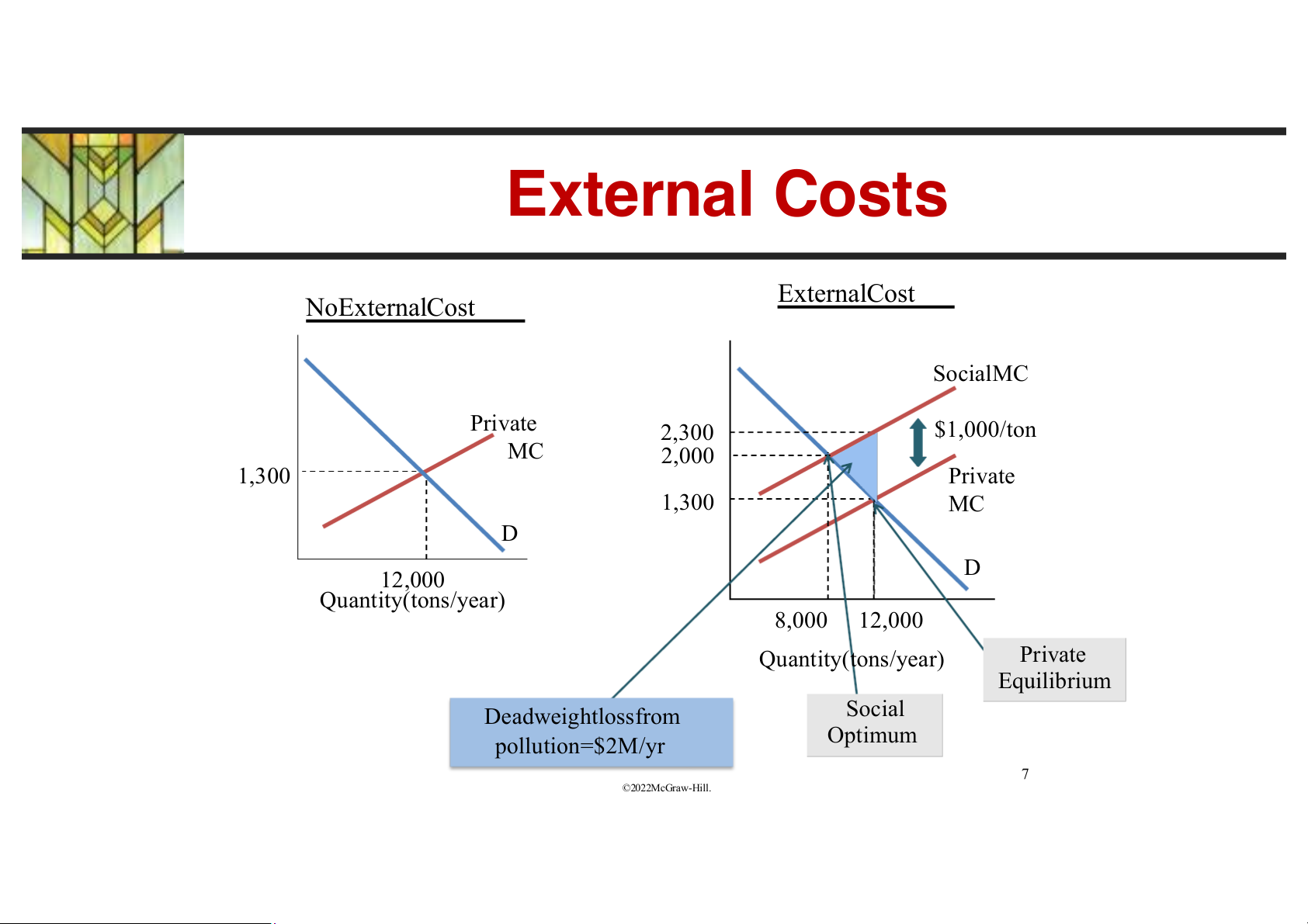 than the social optimum 6 ©2022 McGraw-Hill. External Costs External Cost