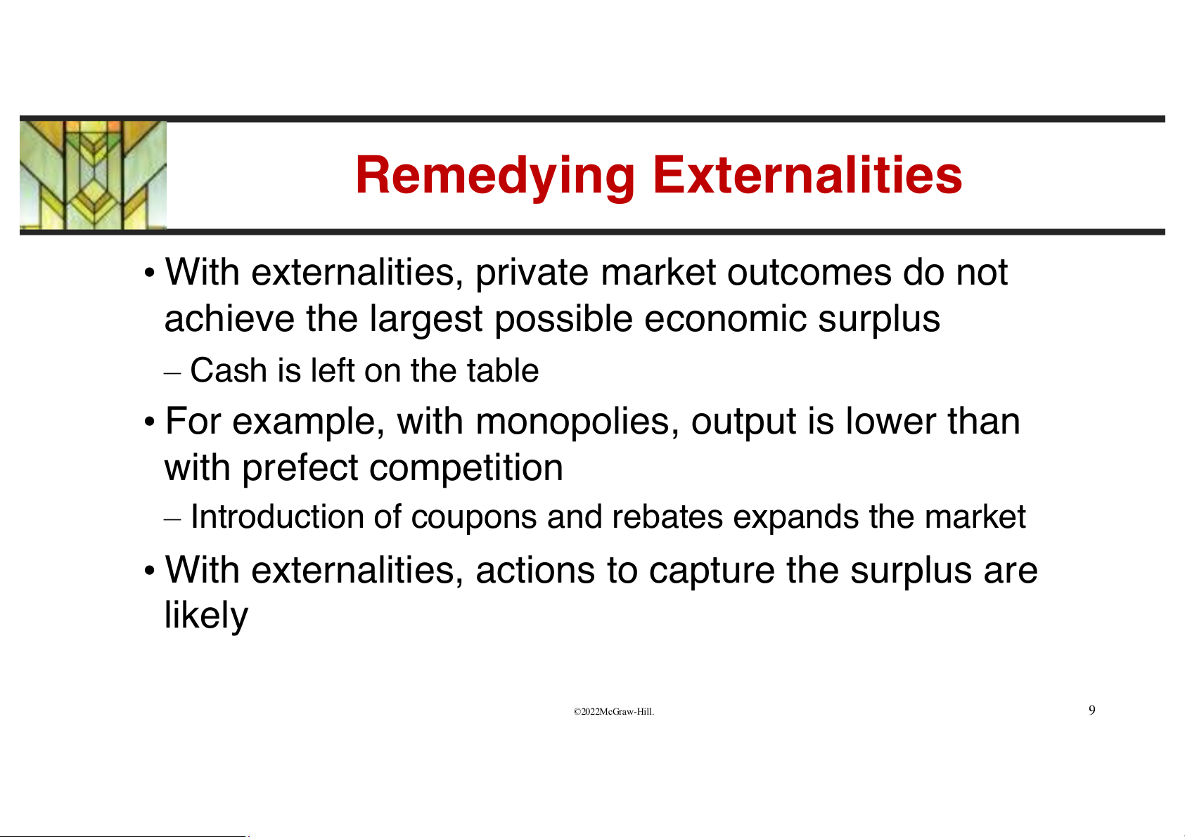 • With externalities, actions to capture the surplus are likely ©2022 McGraw-Hill. 9