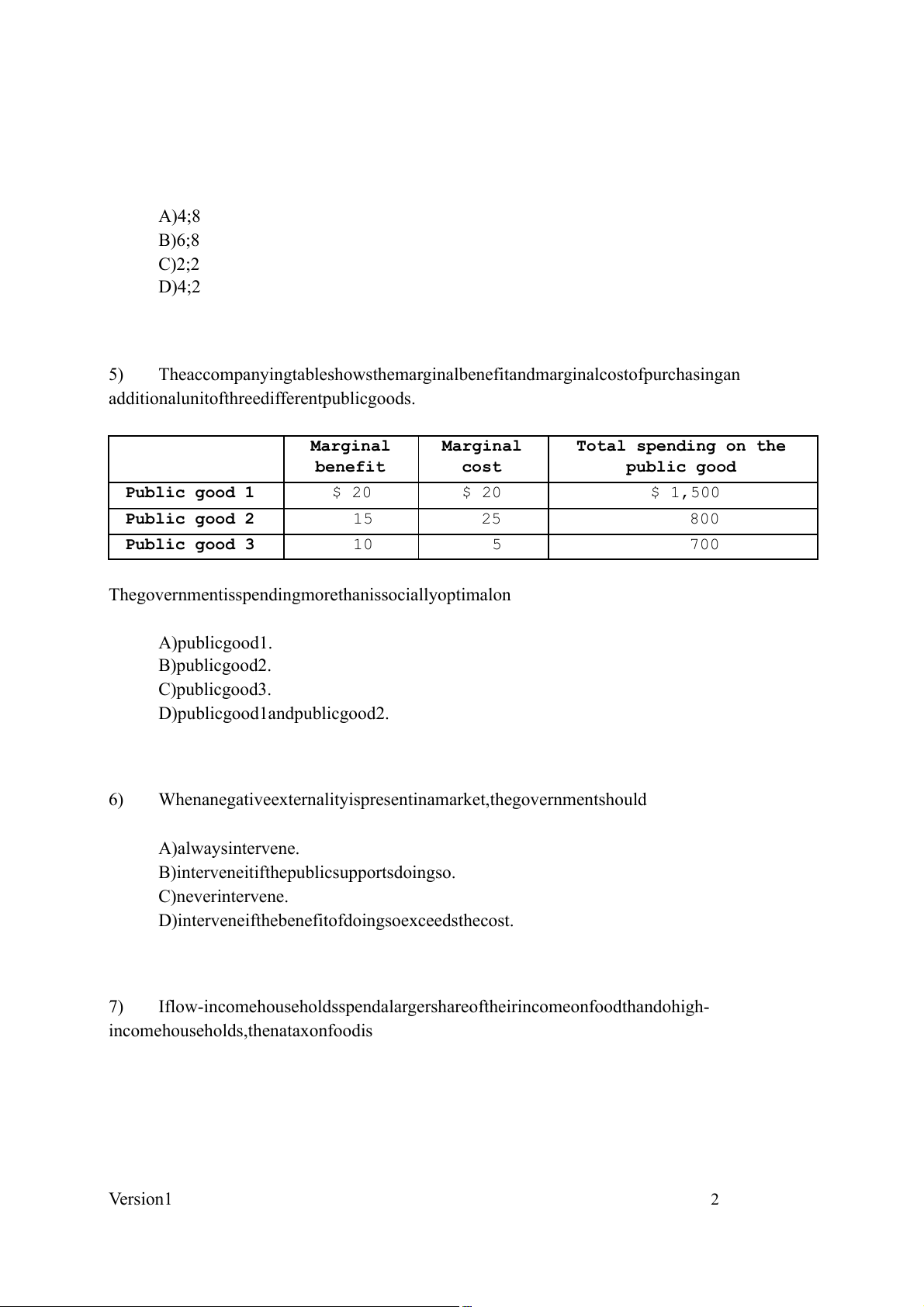 socially optimal on public good 2. 6) D