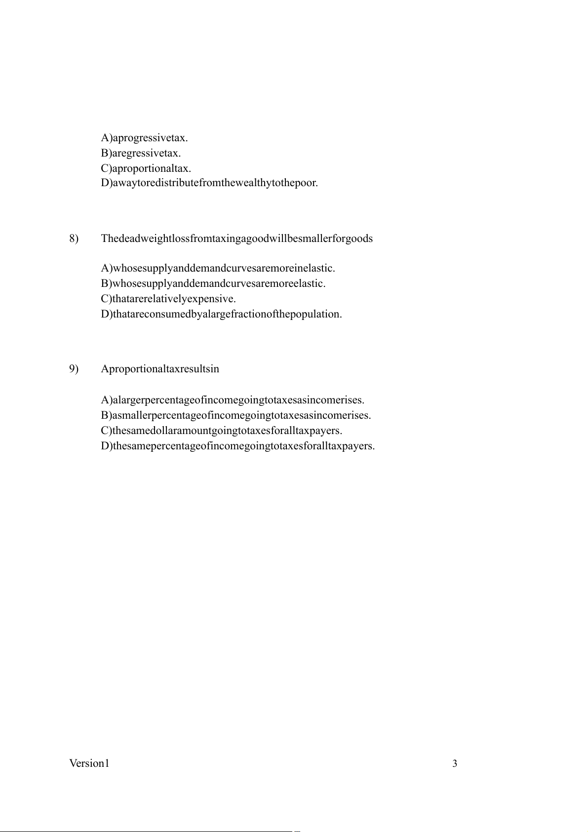 D) the same percentage of income going to taxes for all taxpayers. Version 1 3 10)
