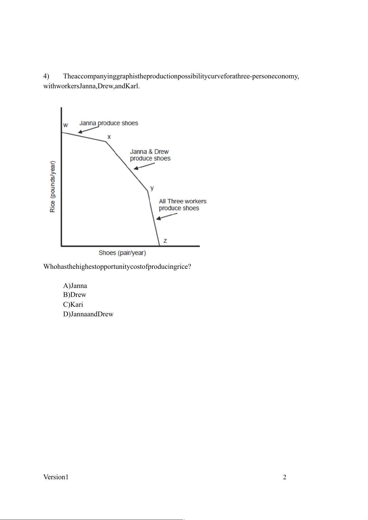 Who has the highest opportunity cost of producing rice? A) Janna B) Drew C) Kari D) Janna and Drew Version 1 2 5)