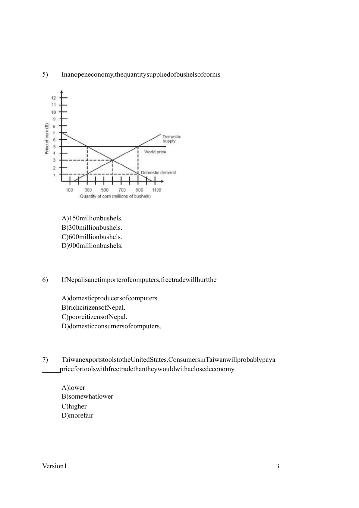 _____ price for tools with free trade than they would with a closed economy. A) lower B) somewhat lower C) higher D) more fair Version 1 3 8)