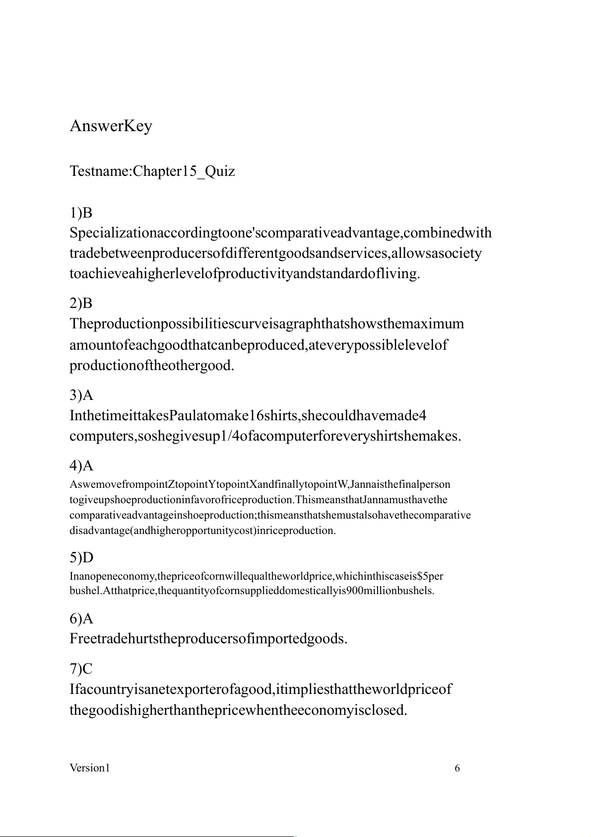 A tariff is a tax imposed on ______ good. Version 1 4 A) an imported B) a luxury C) an illegal D) a domestic Version 1 5 Answer Key