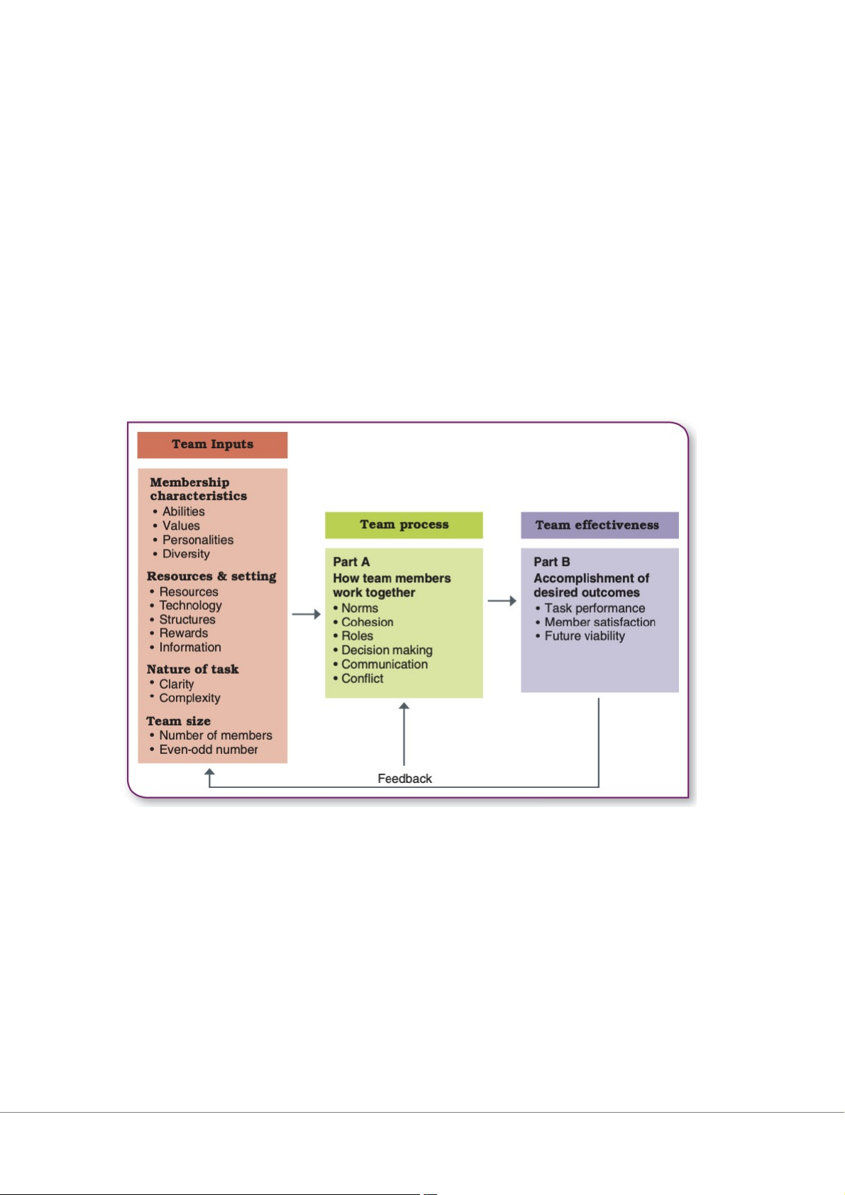 1. Perform its tasks: a team need to be able to transform input resource into outputs.