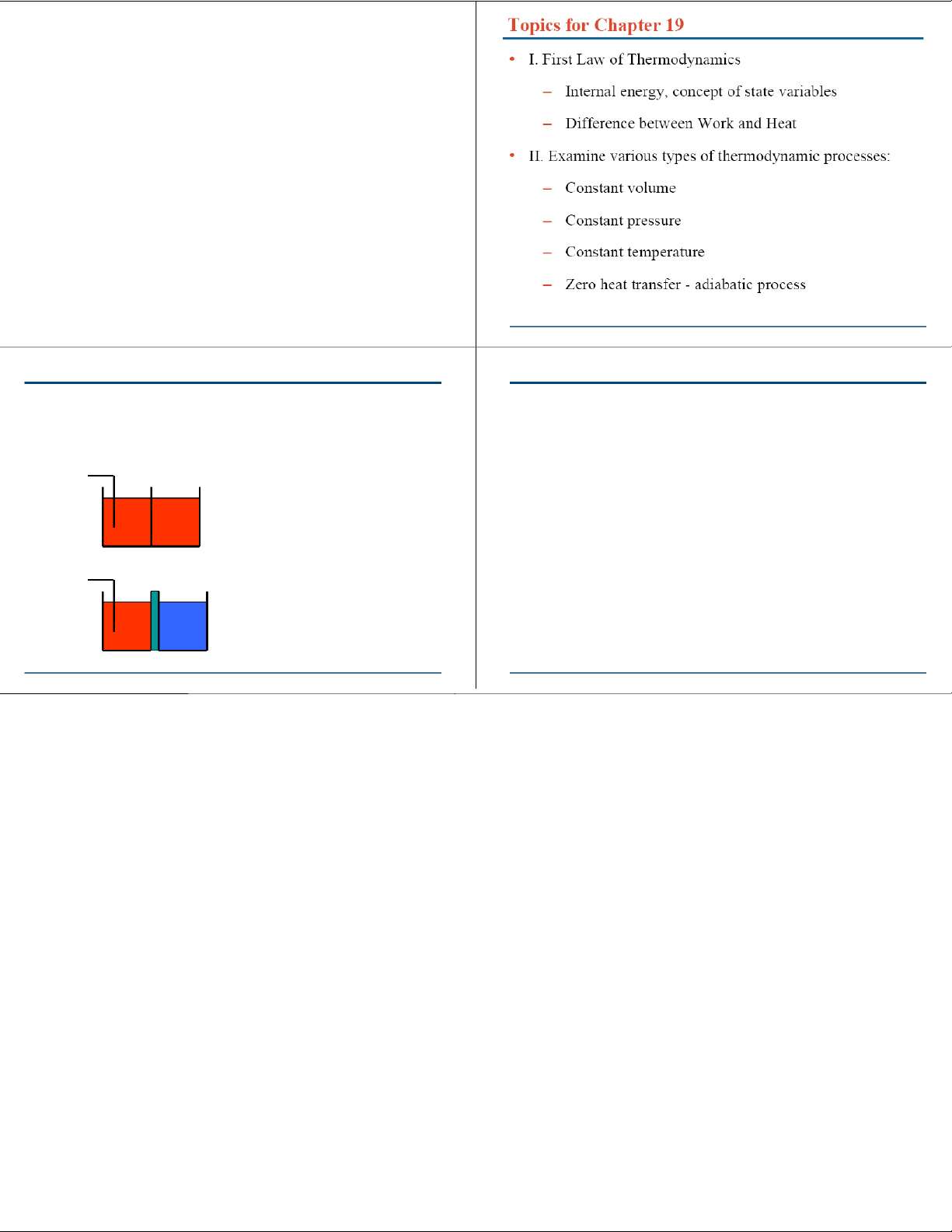 Chapter 19 The first law of thermodynamics HUST – CTTT PH 1026 Thermal Contact Thermal Equilibrium Two cups of water are in