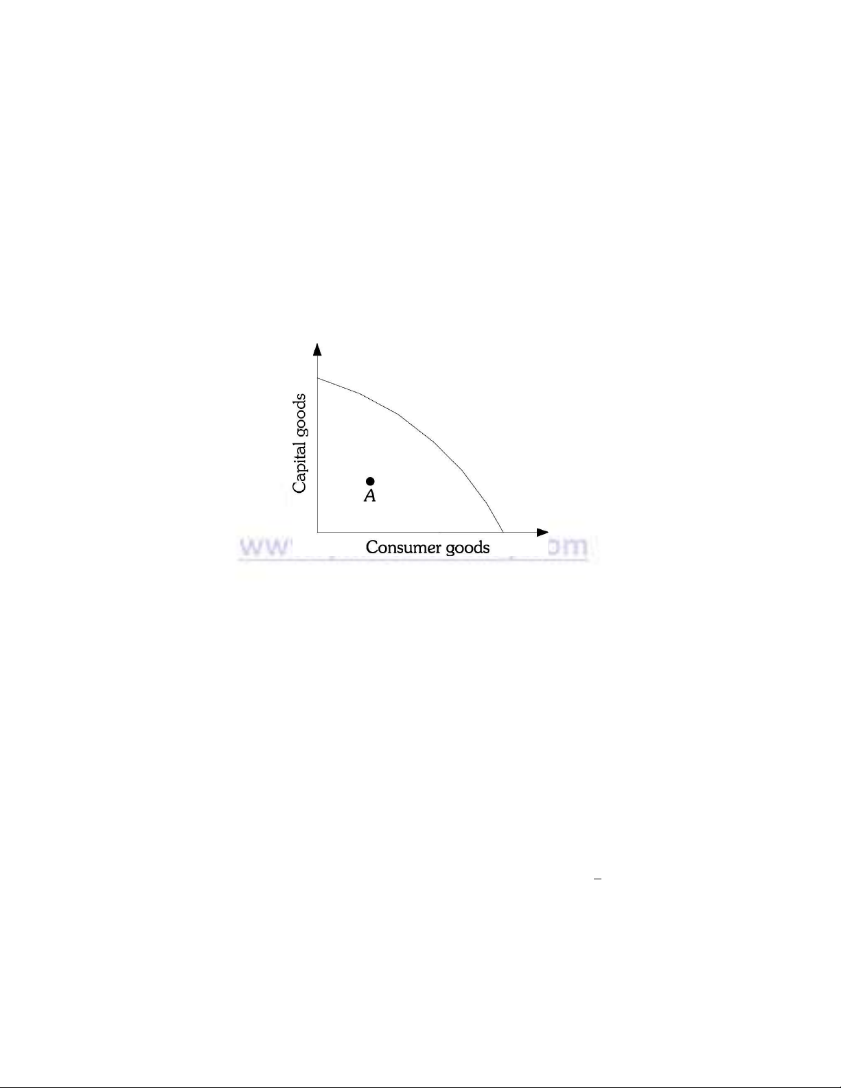 28) Refer to Figure 2.1. The economy is currently operating at Point A. The best explanation for this is that A)