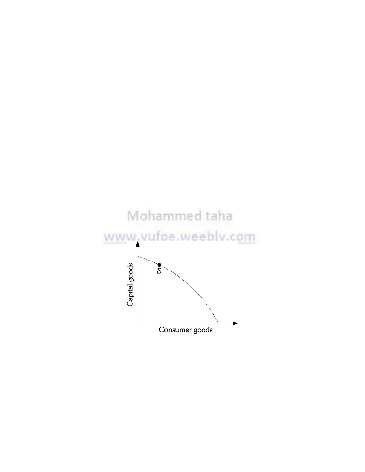 70) In terms of the production possibility frontier, would best be shown by the