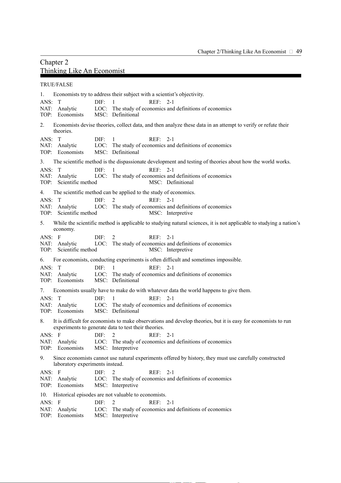 Chapter 2/Thinking Like An Economist 49 Chapter 2 Thinking Like An Economist TRUE/FALSE 1.