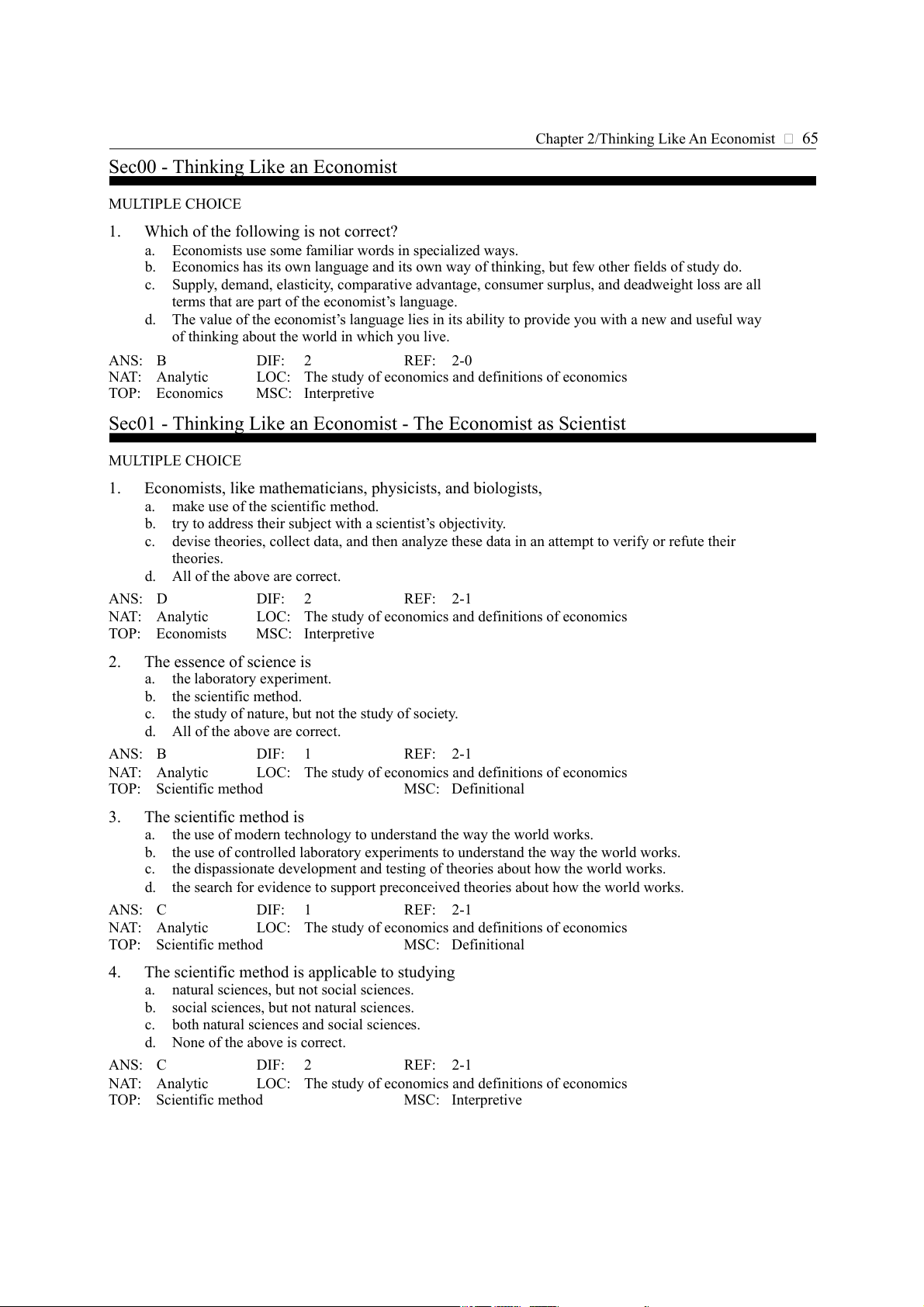 LOC: The study of economics and definitions of economics TOP: Scientific method MSC: Definitional 4.