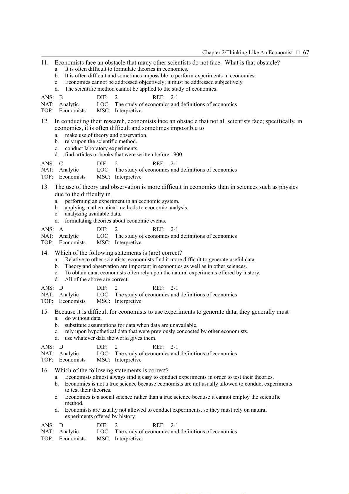 d. Economists use controlled experiments in much the same way that biologists and physicists do. ANS: C DIF: 2 REF: 2-1 NAT: Analytic