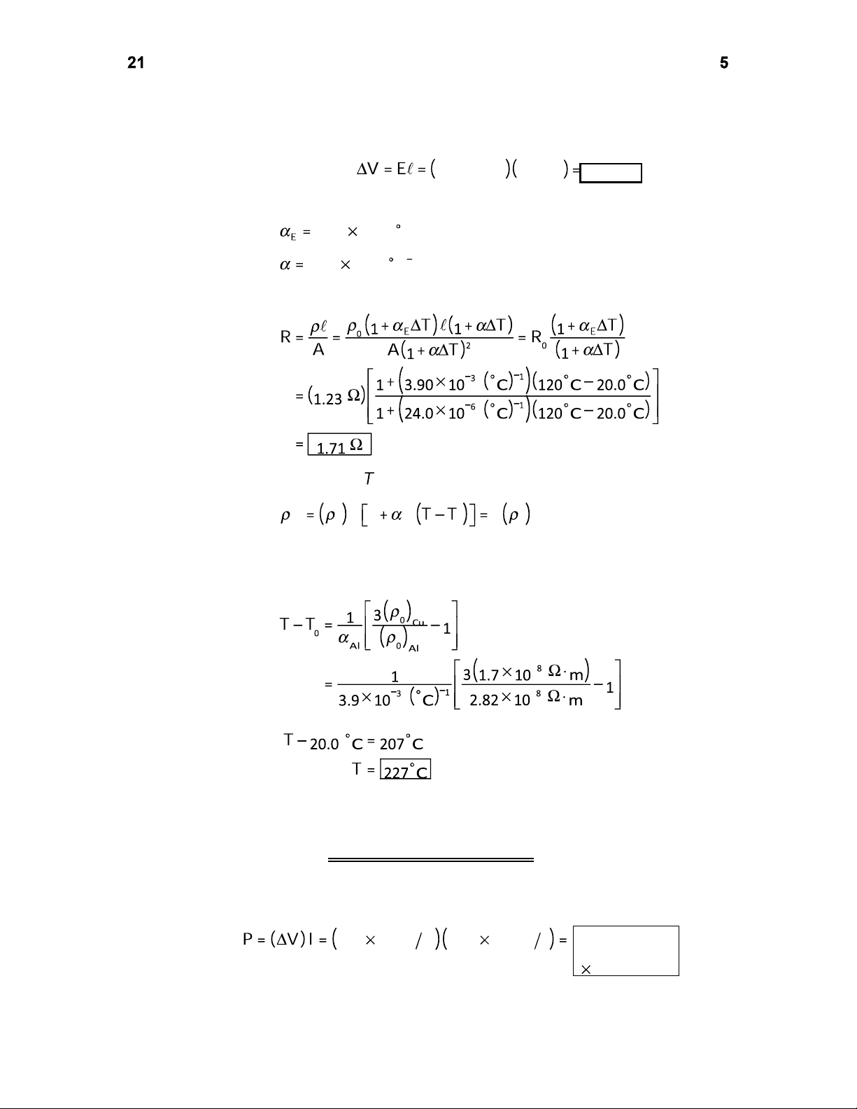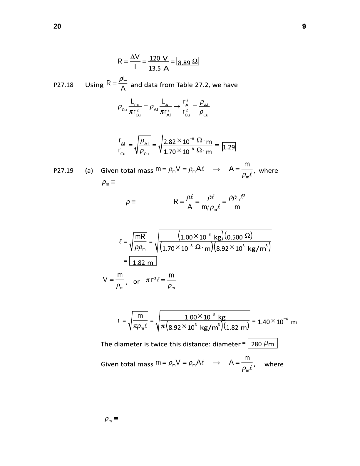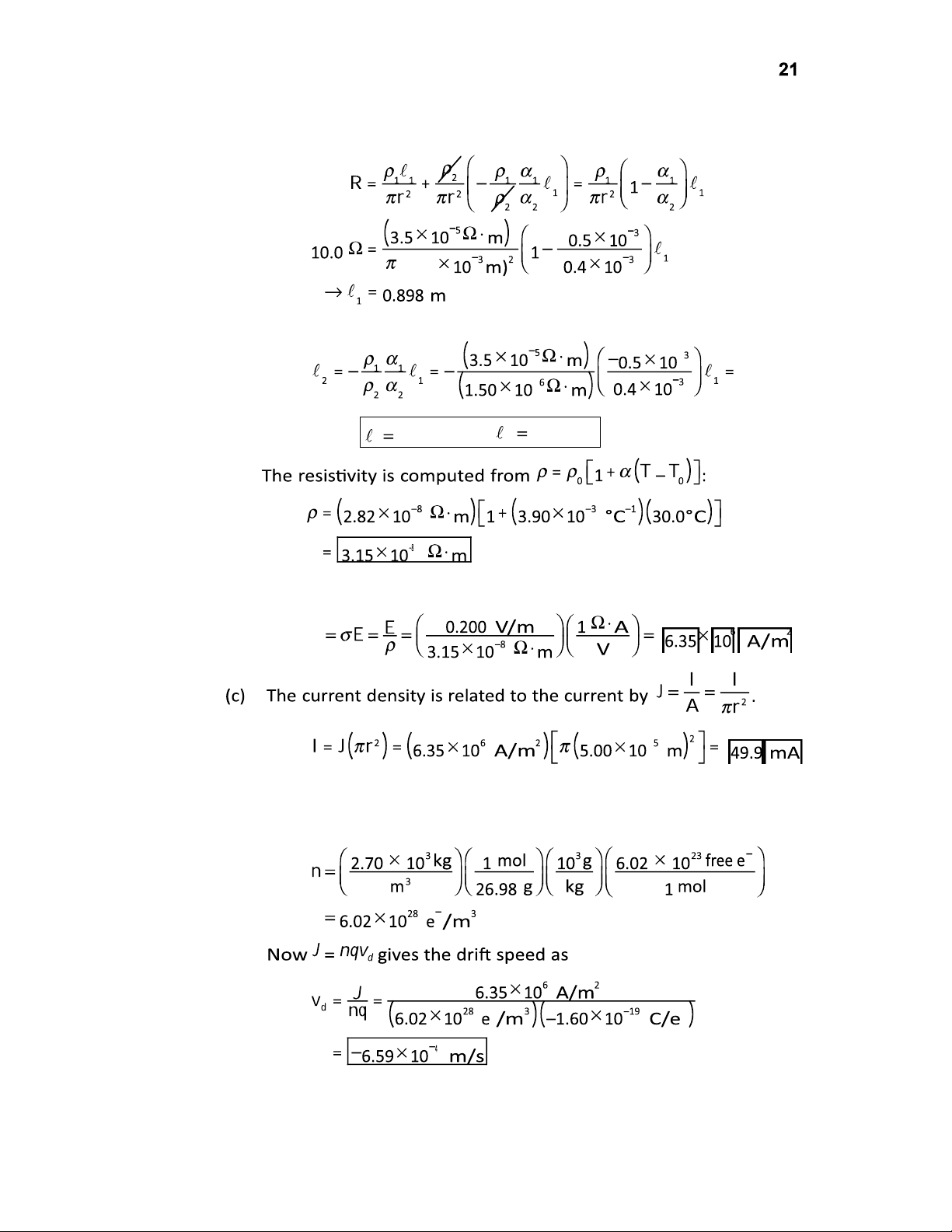The sign indicates that the electrons drift opposite to the field and current. (e) The applied voltage is 0.200 V/m 2.00 m 0.400 V . P27.34 For aluminum, 3.90 10 3 C 1 (Table 27.2) and 24.0 10 6 C 1 (Table 19.1) The resistance is then P27.35