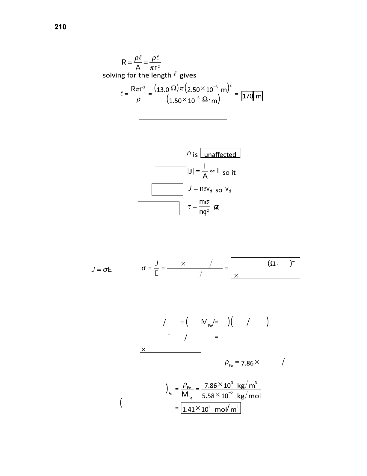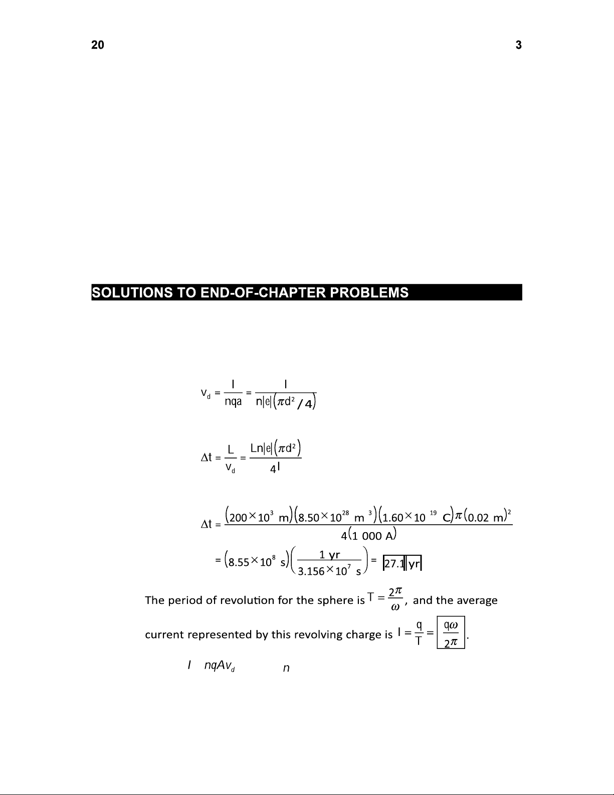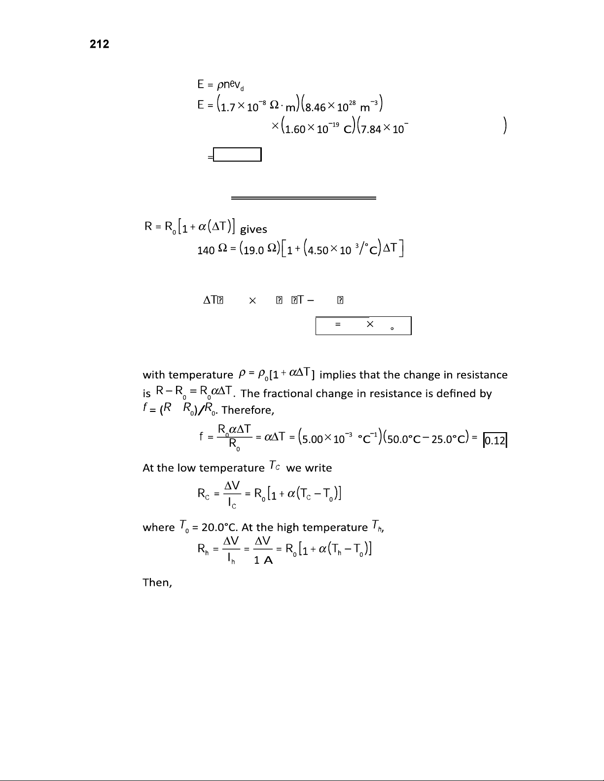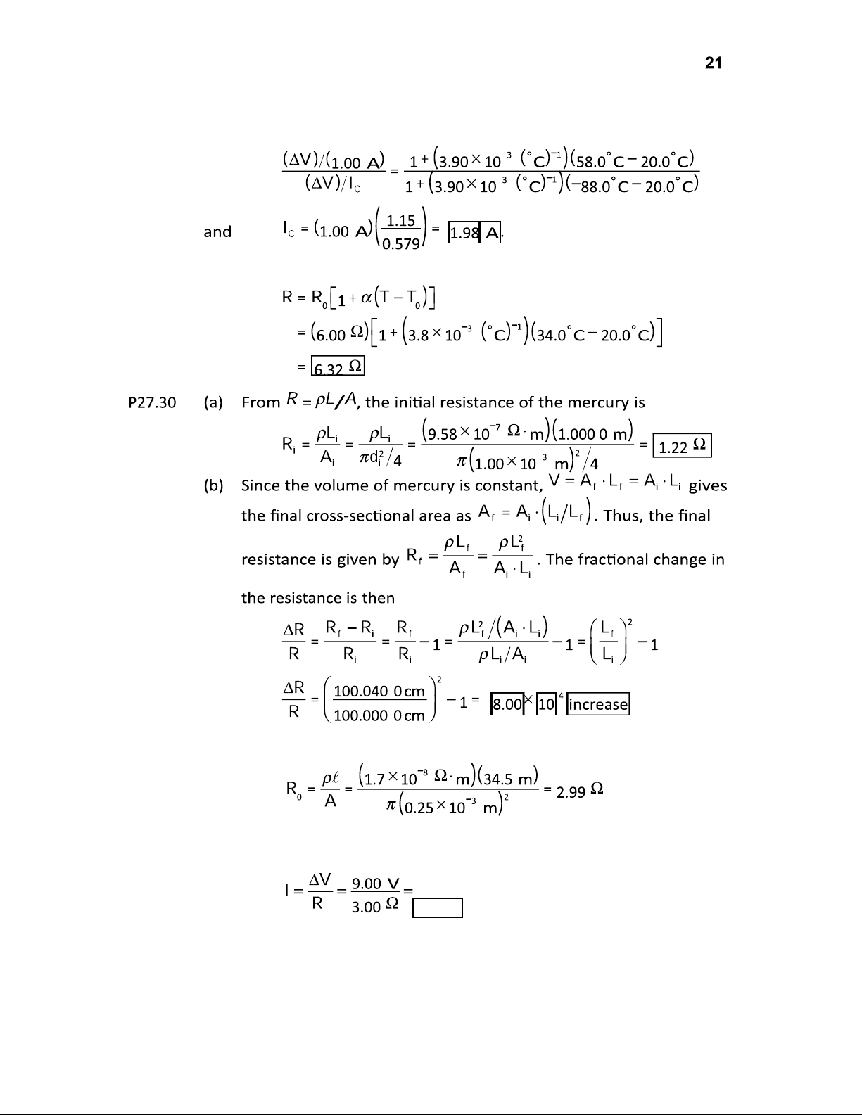 The sign indicates that the electrons drift opposite to the field and current. (e) The applied voltage is 0.200 V/m 2.00 m 0.400 V . P27.34 For aluminum, 3.90 10 3 C 1 (Table 27.2) and 24.0 10 6 C 1 (Table 19.1) The resistance is then P27.35