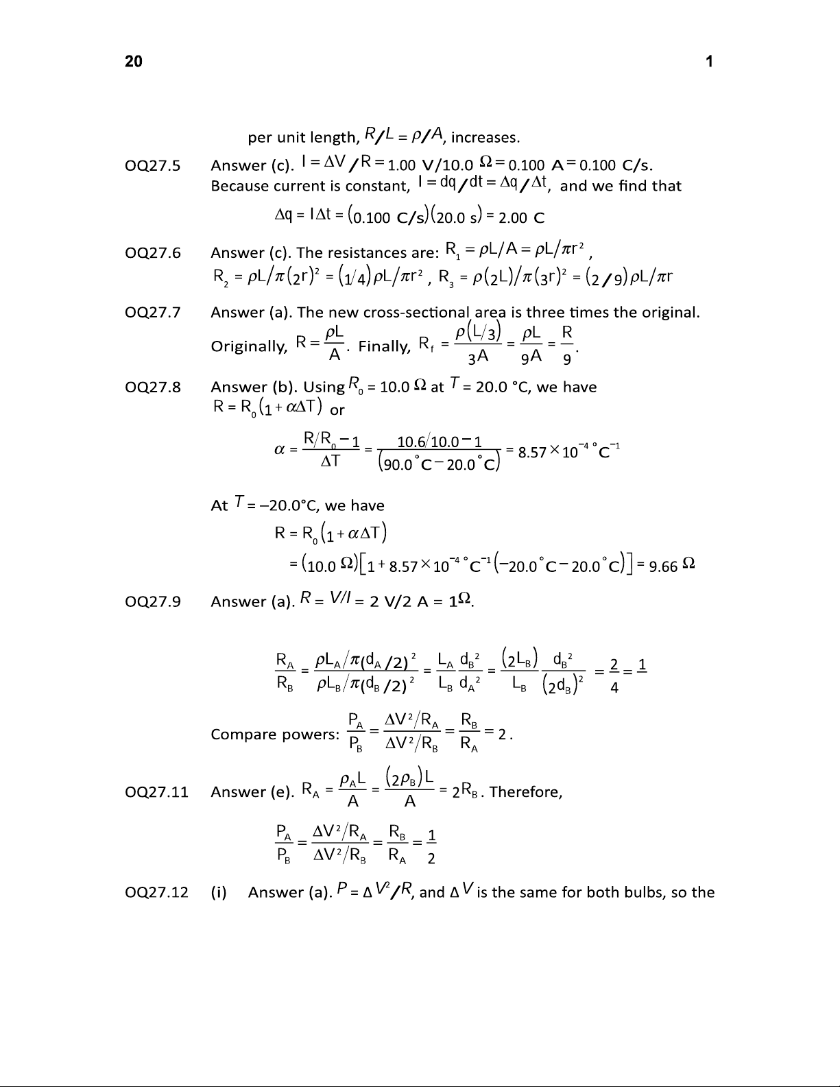 hour rating is the quantity of charge that the battery can lift though its nominal potential difference. OQ27.2 (i) Answer (e). We require = 3 / Then = 1/3. (ii) Answer (d). 2/ 2 = 1/3 gives / = 1/ 3 . OQ27.3