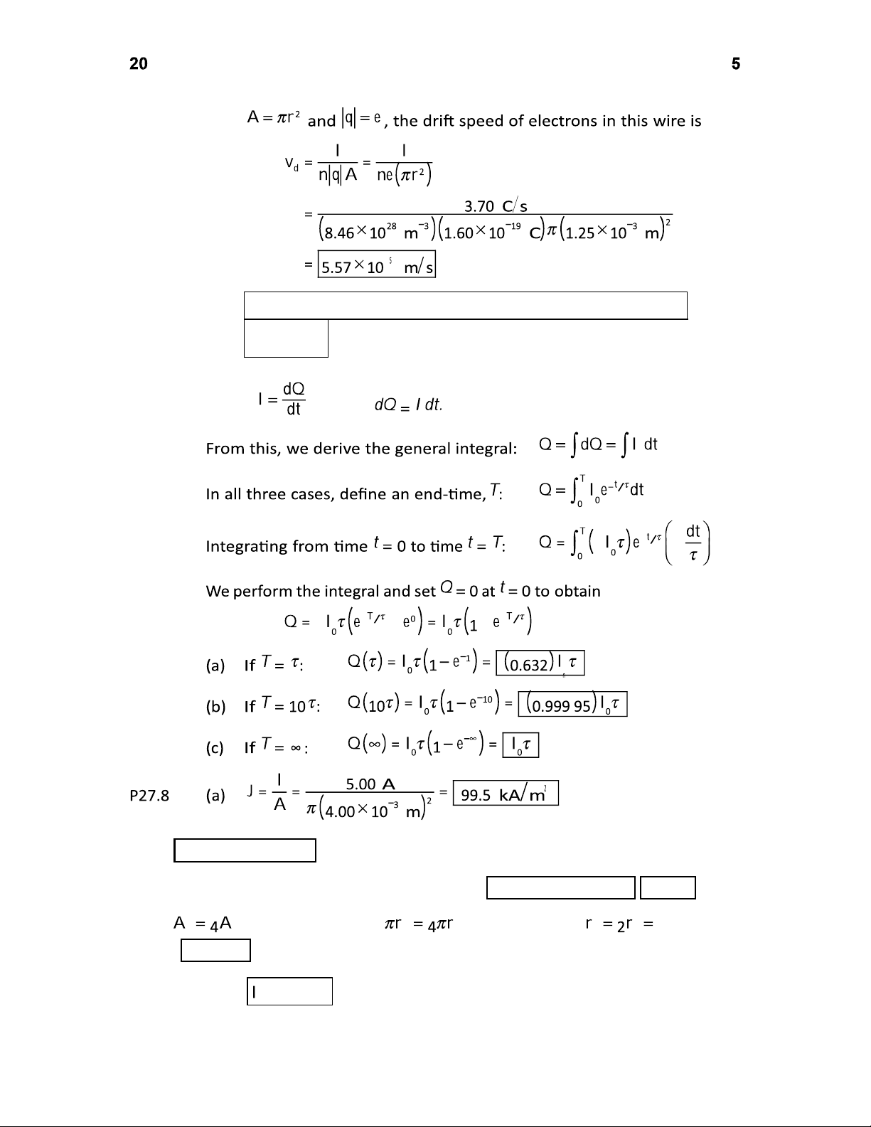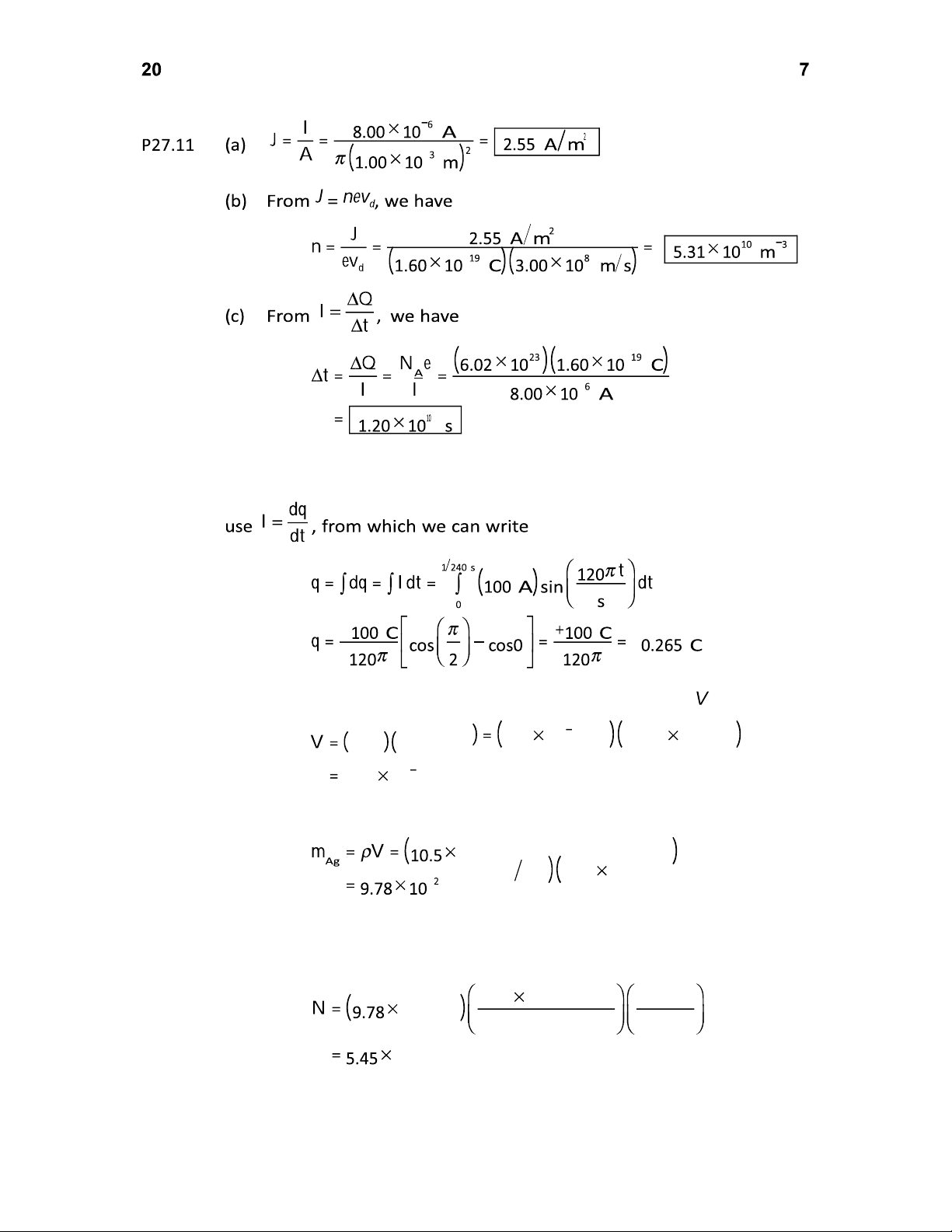 conducted. To create the same current, therefore, the drift speed need not be as great. P27.7 From , we have – – – – – – – – (b) Current is the same. (c)