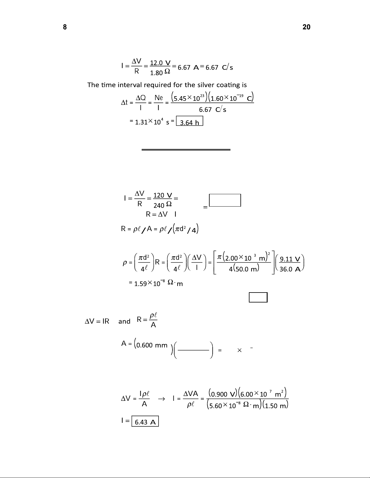 And the number of silver atoms deposited is 23 2 6.02 10 atoms 1000 g 10 kg 107.9 g 1 kg 1023 atoms lOMoAR cPSD| 58702377 Chapter 27 The current is then Section 27.2 Resistance P27.14 From Equation 27.7, we obtain 500 mA 0.500 A *P27.15 From Ohm’s law, / , and from Equation 27.10,