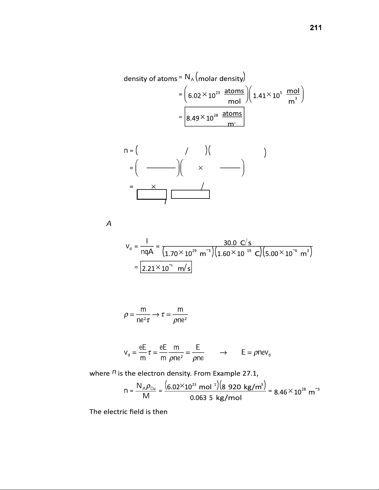 charge carriers atom density of atoms electrons 28 atoms 2 8.49 10 3 atom m 1.70 10 29 electrons m 3