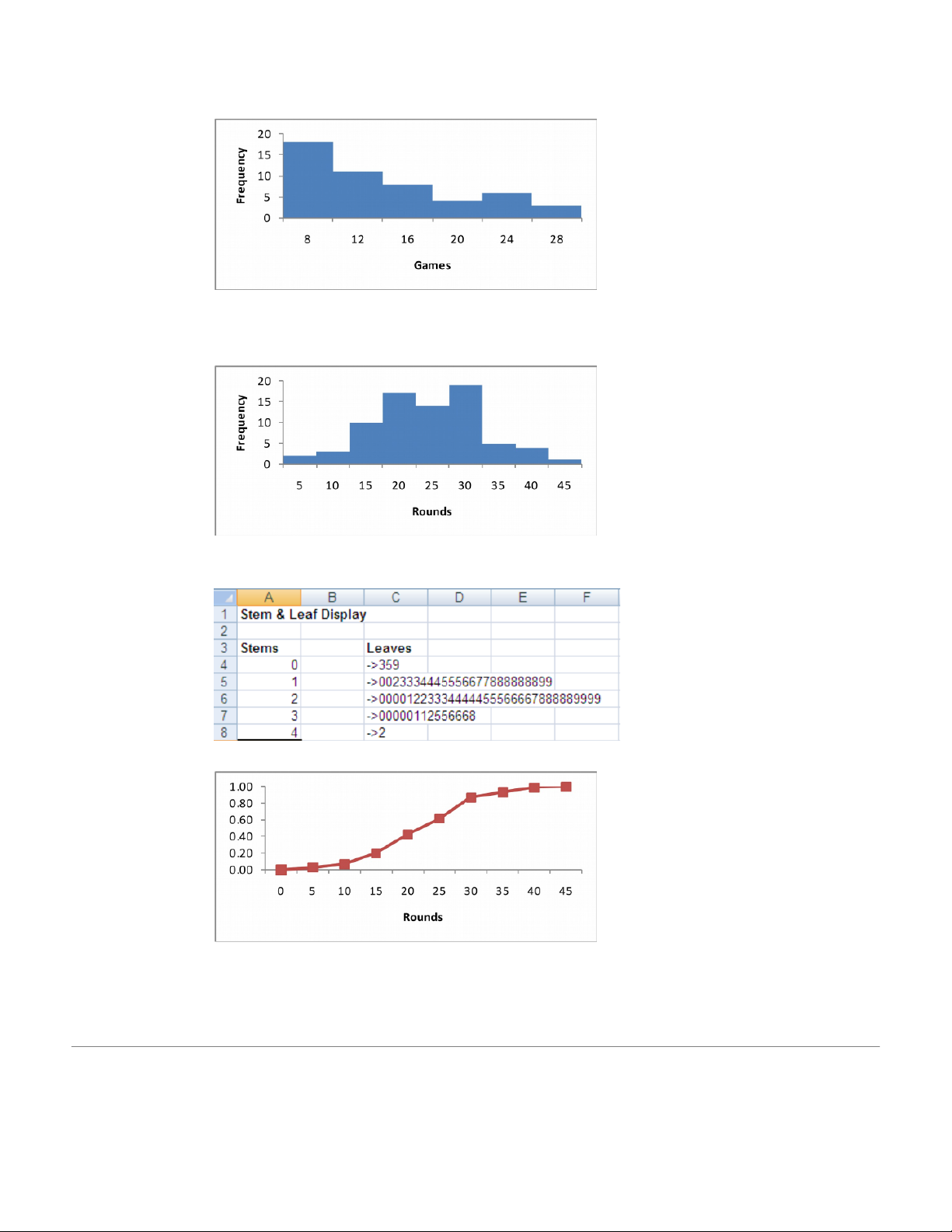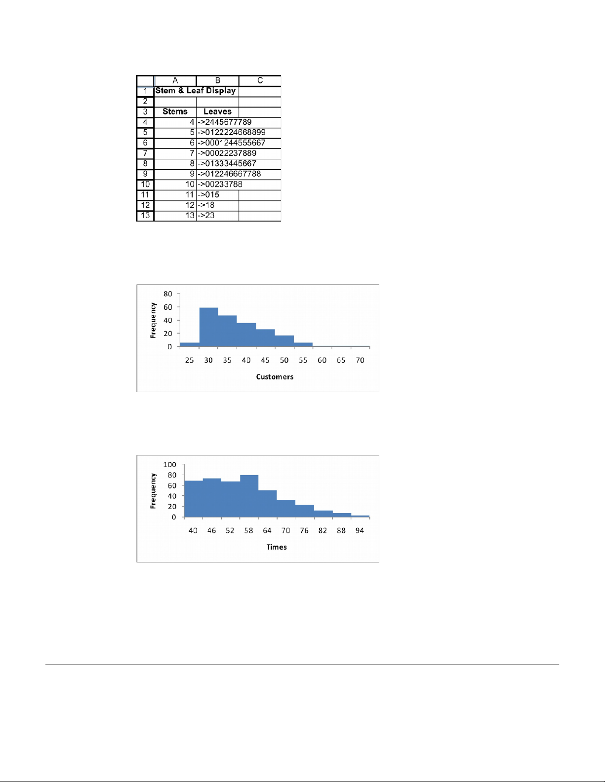 d The ages are bimodal and positively skewed. 3.8 The histogram is bimodal. 3.9 a Stem & Leaf Display Stems Leaves 30 ->0112222222356667777788 31 ->001113568 32 ->024777 33 ->0047 34 ->024455 35 ->7 36 ->7 37 ->9 39 b