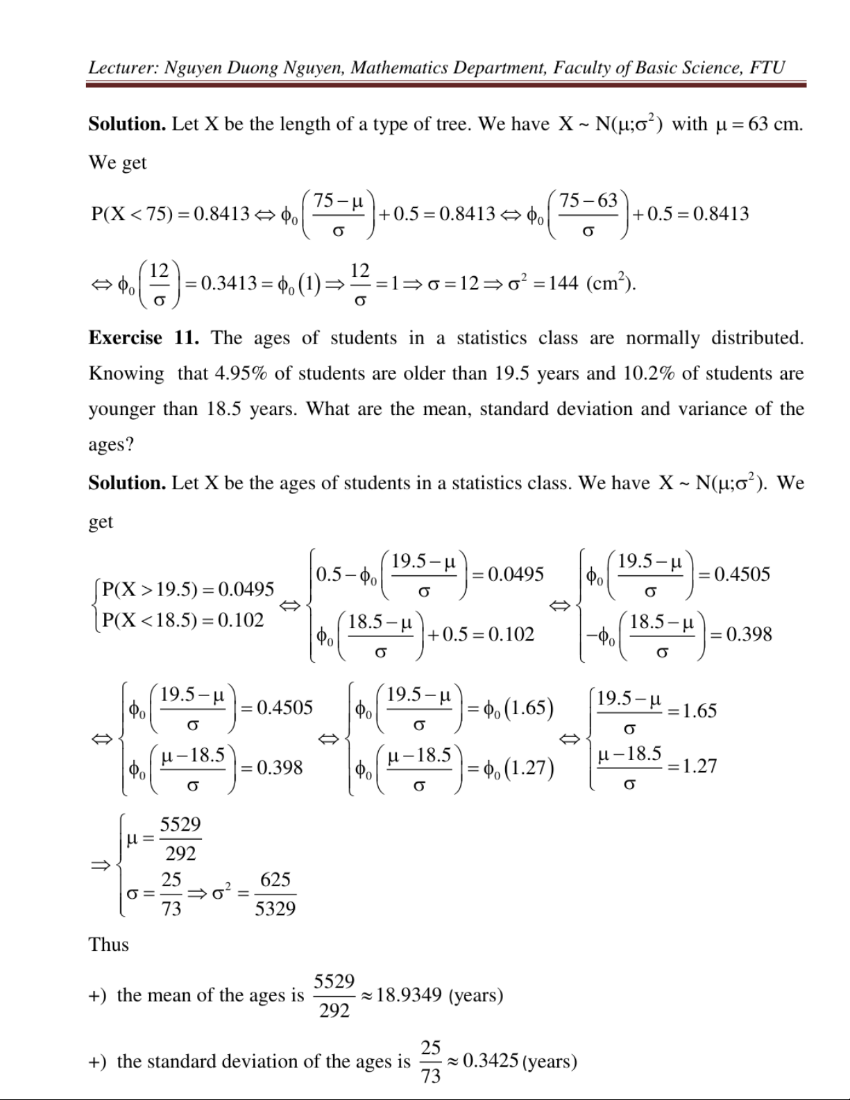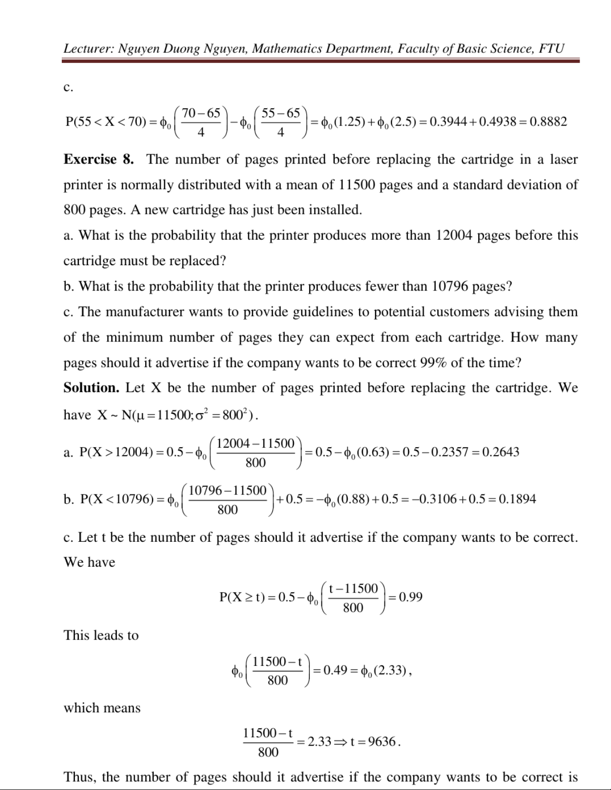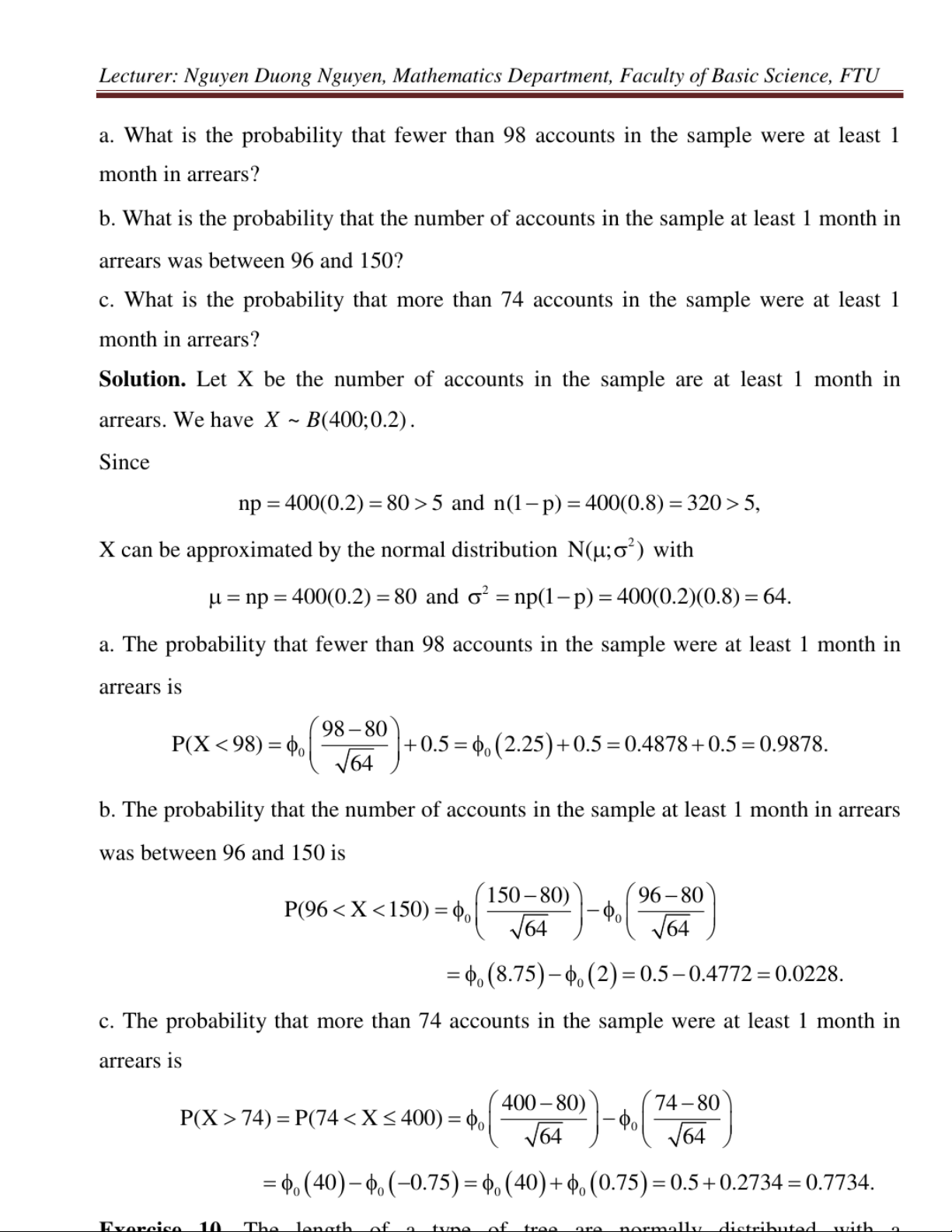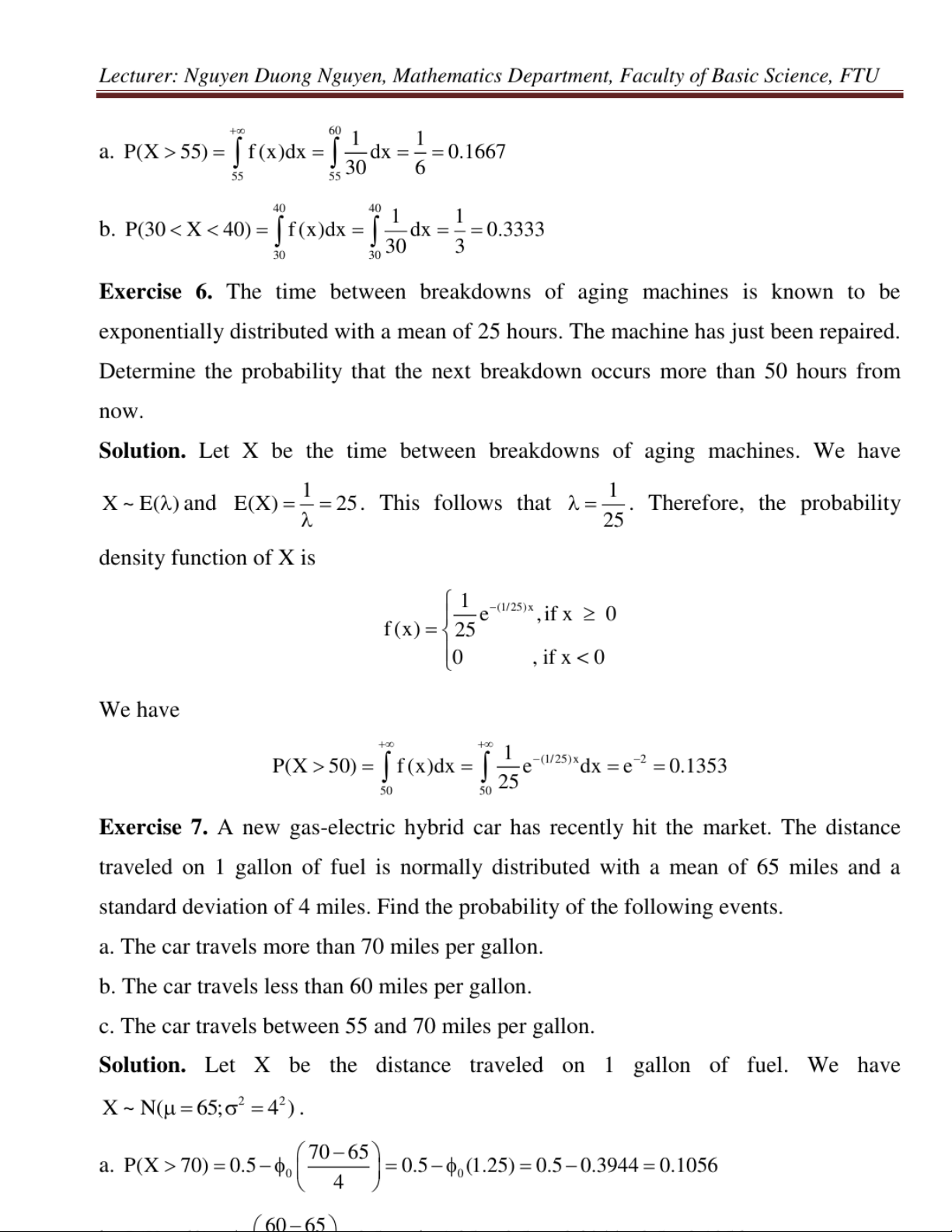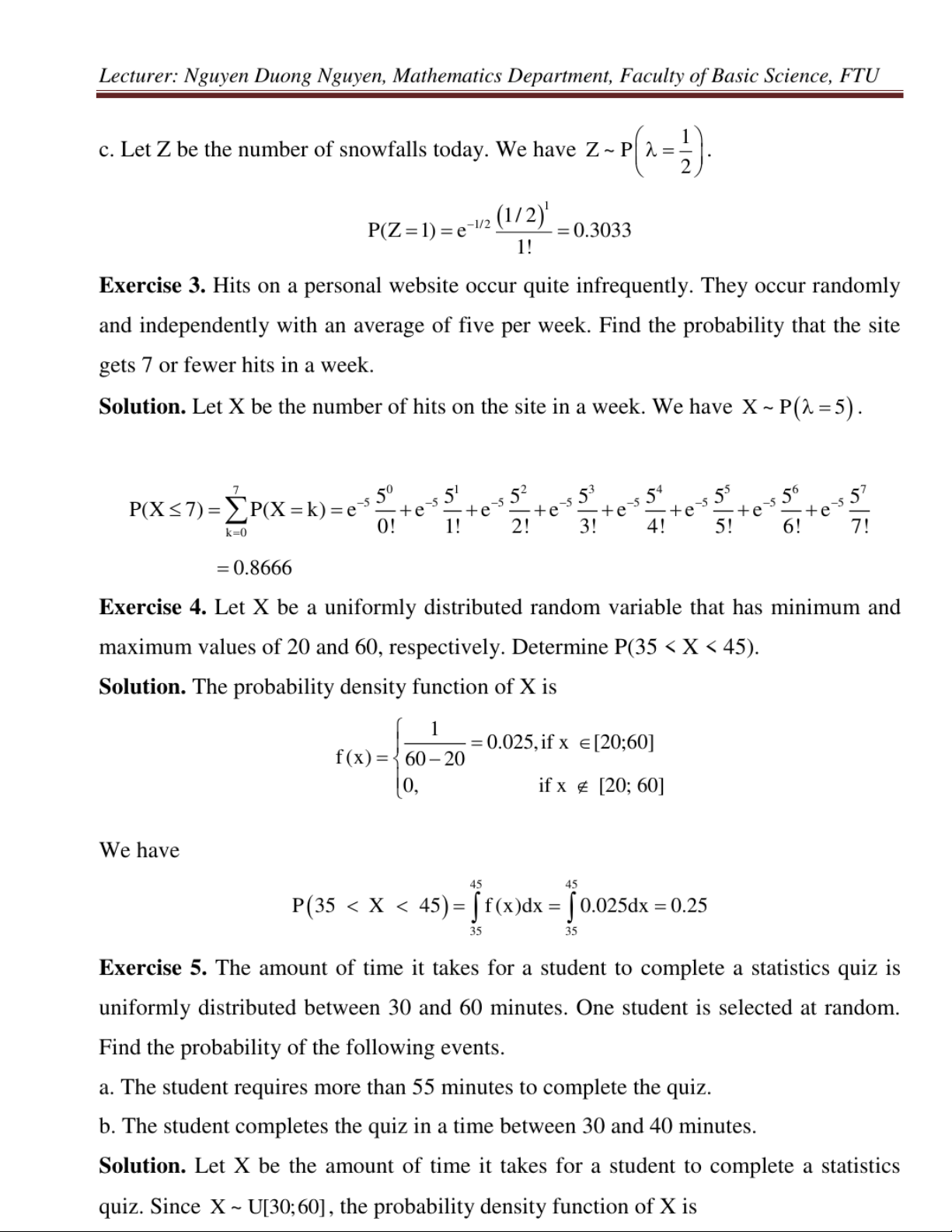 Exercises for probability & statistics môn Xác suất thống kê| Trường Đại học Ngoại Thương
