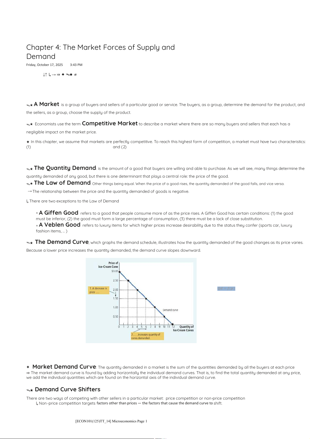 Chapter 4: The Market Forces of Supply and Demand Friday, October 17, 2025 3:43 PM