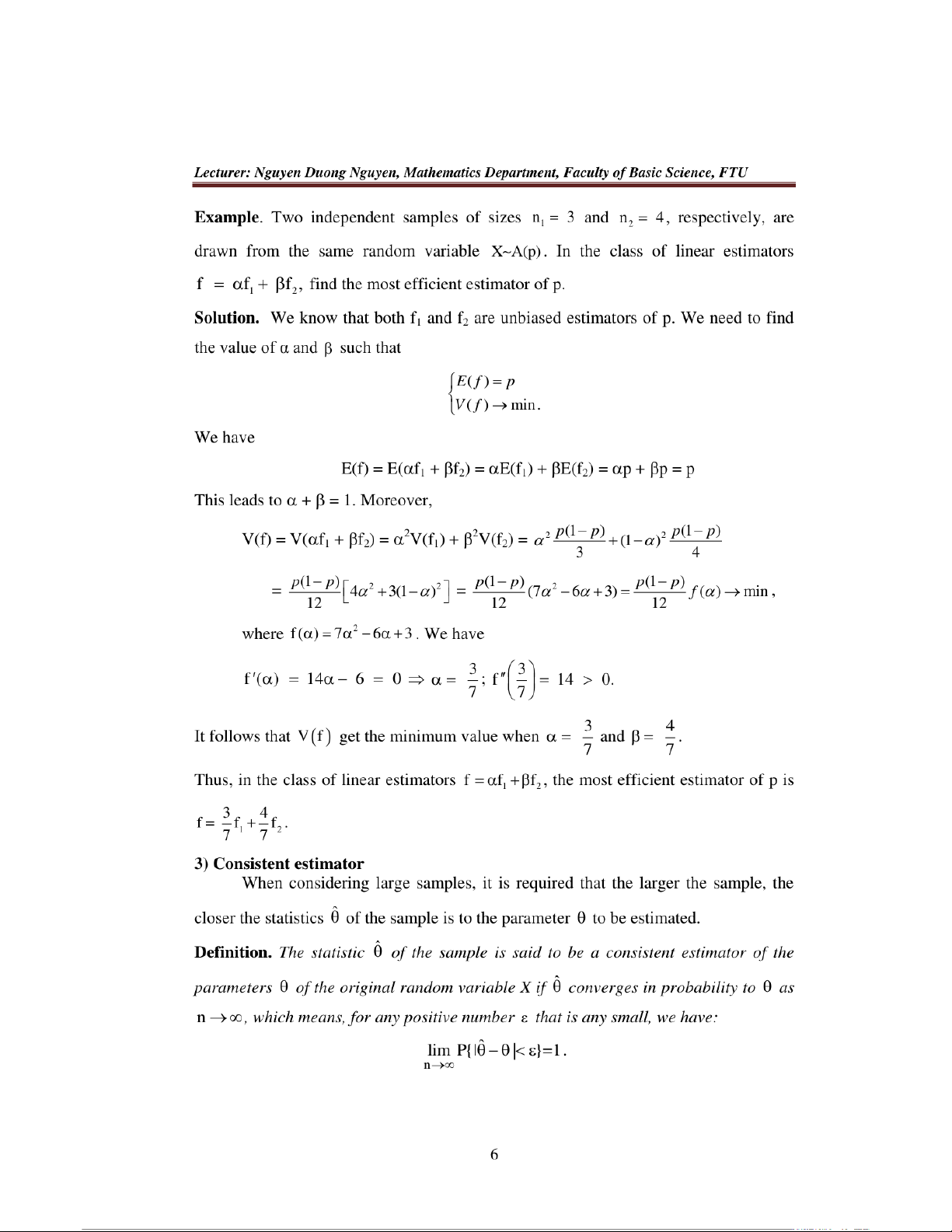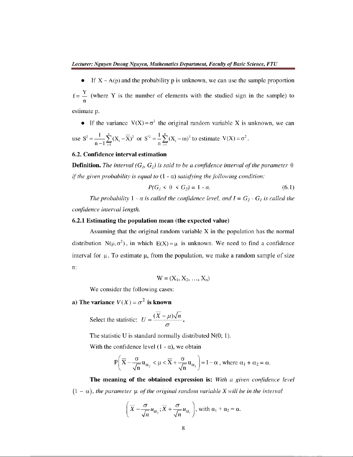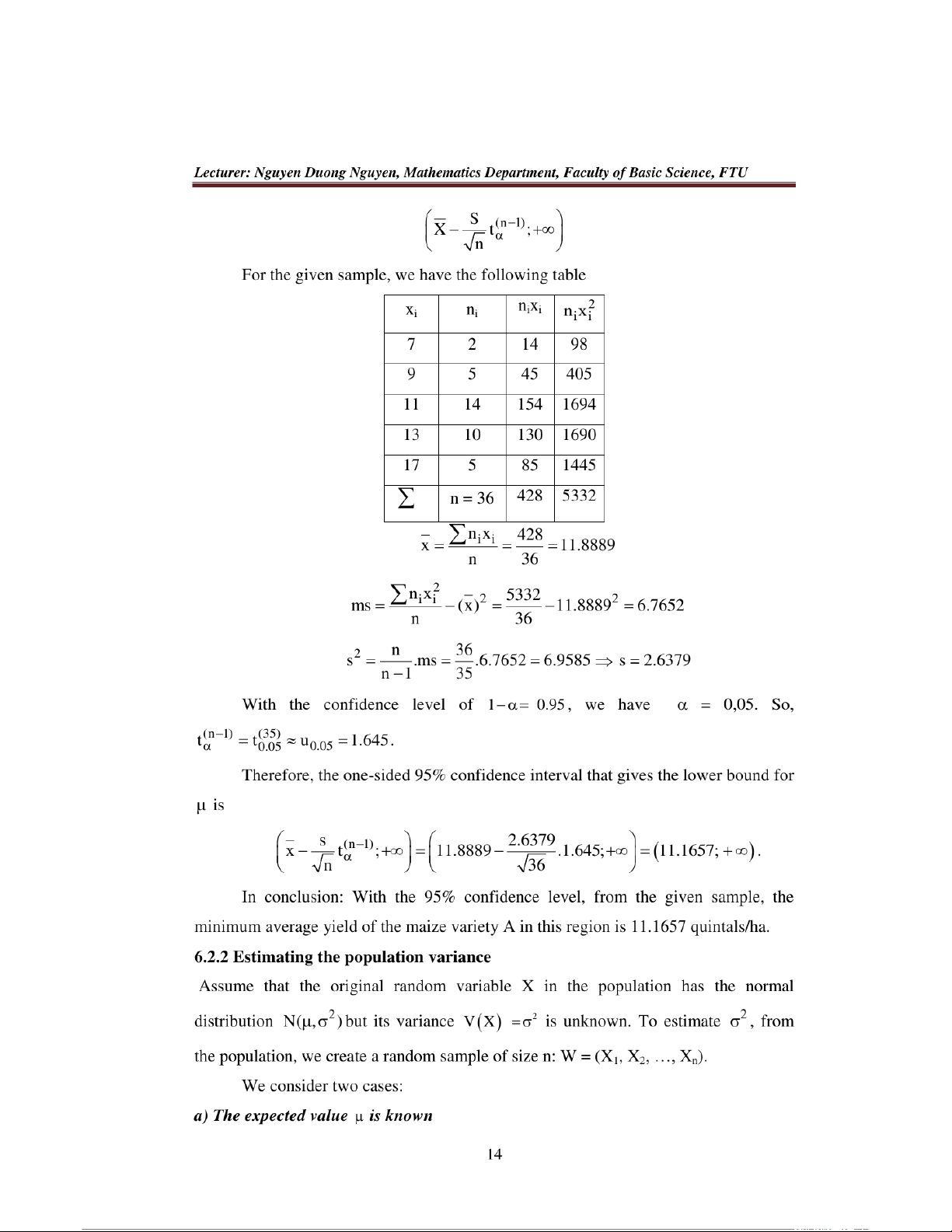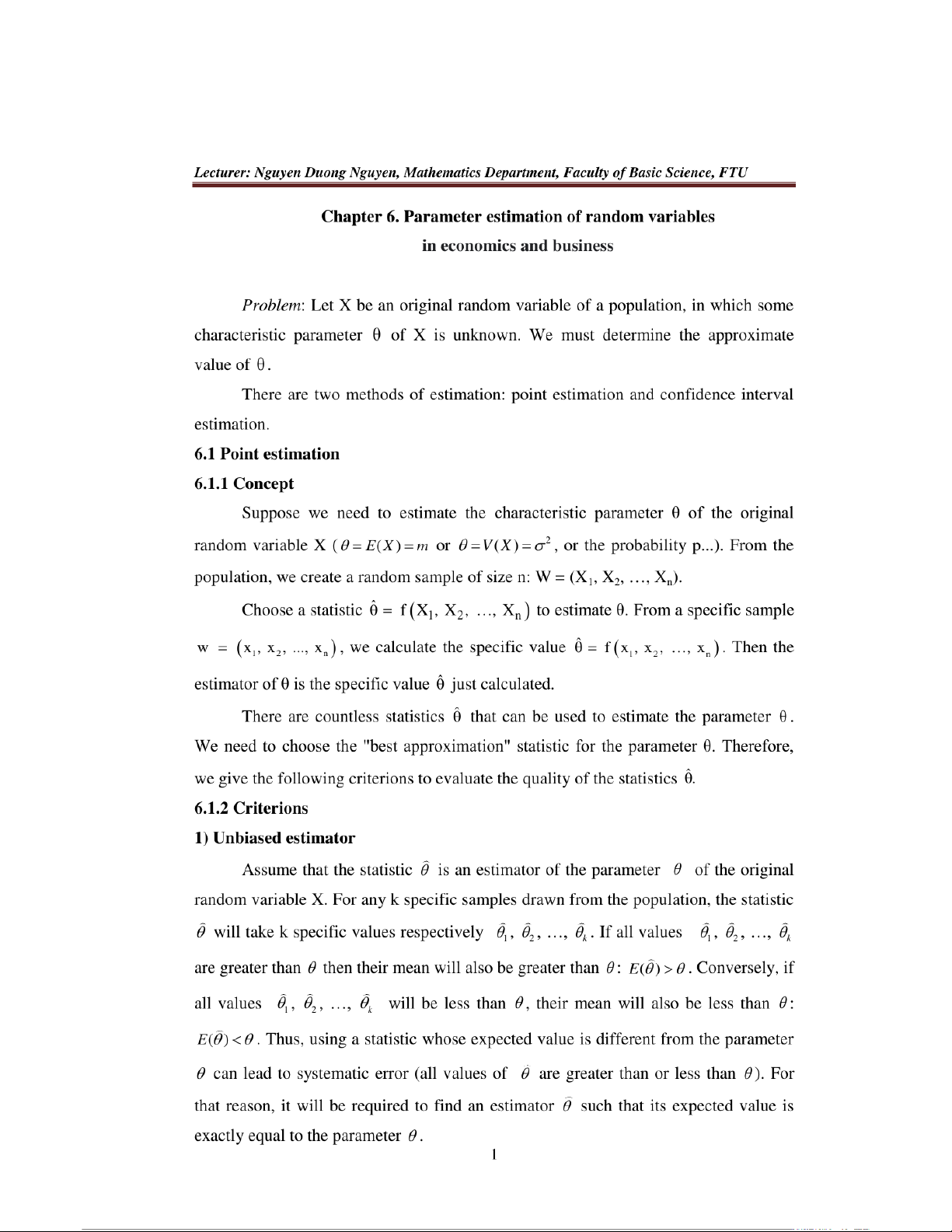 Chapter 6: Parameter Estimation in Economics and Business - Toán thầy Nguyễn - Studocu