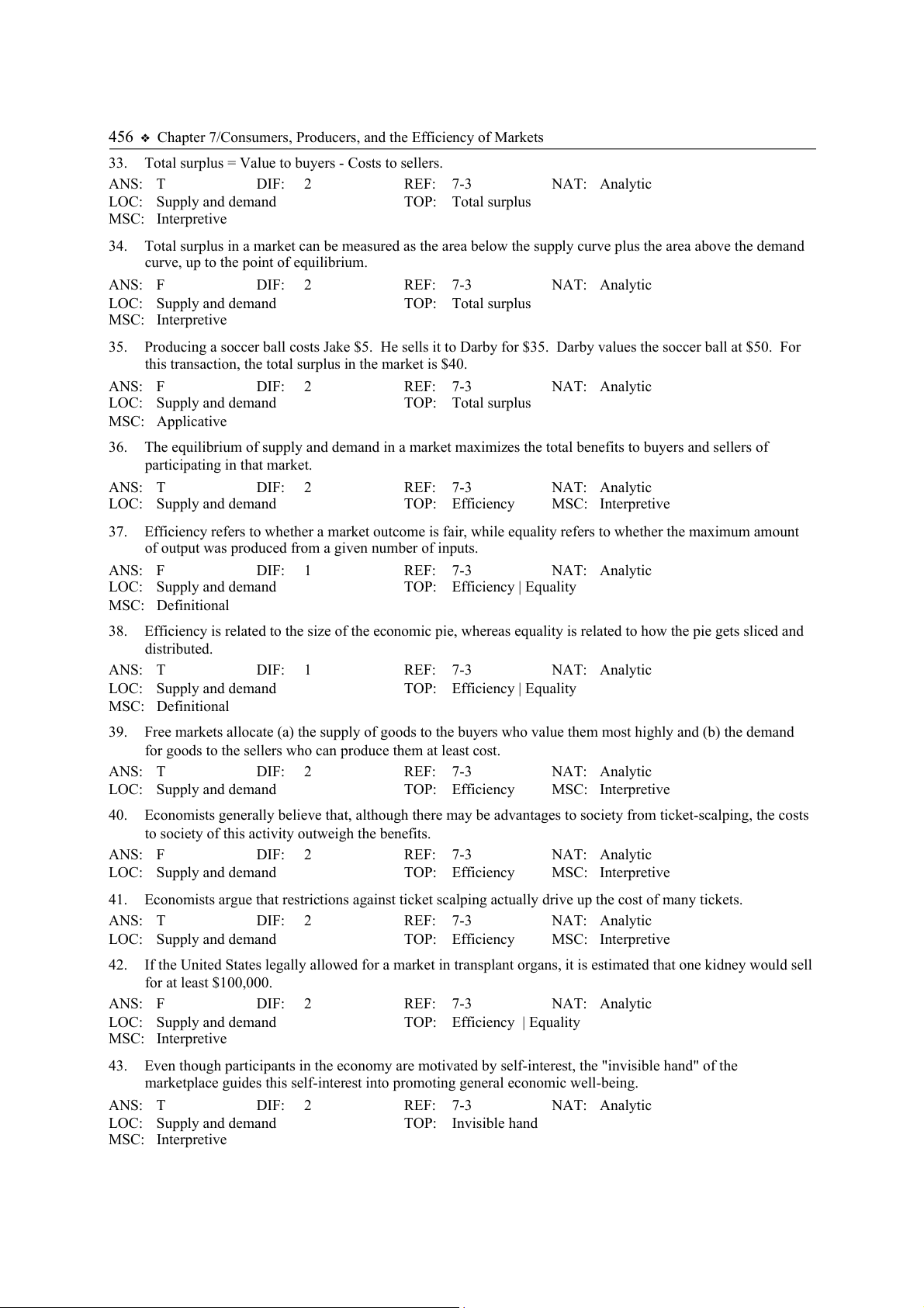 of output was produced from a given number of inputs. ANS: F DIF: 1 REF: 7-3 NAT: Analytic LOC: Supply and demand TOP: Efficiency | Equality MSC: Definitional 38.