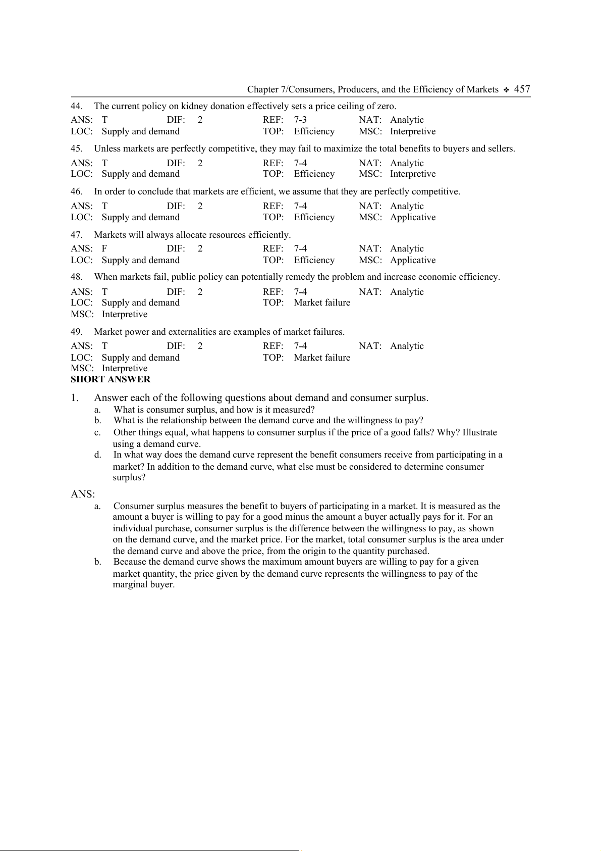 Chapter 7/Consumers, Producers, and the Efficiency of Markets 459 2.