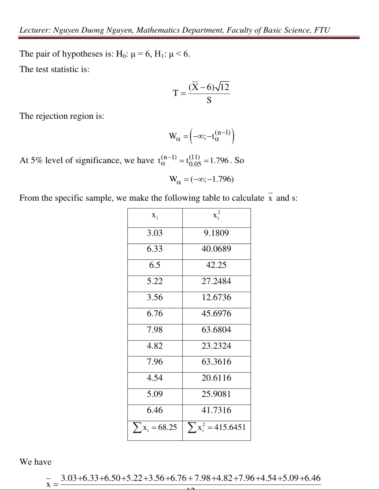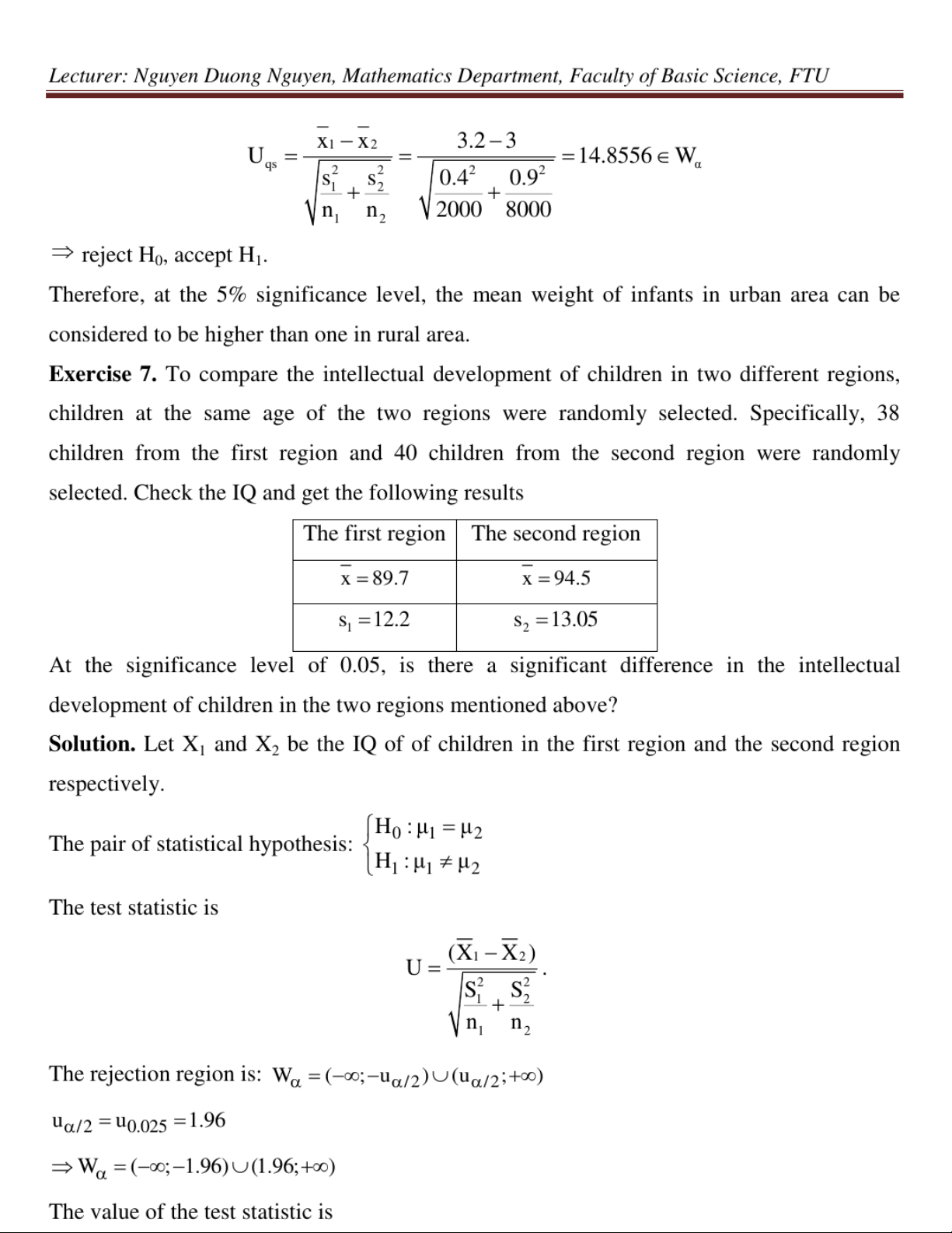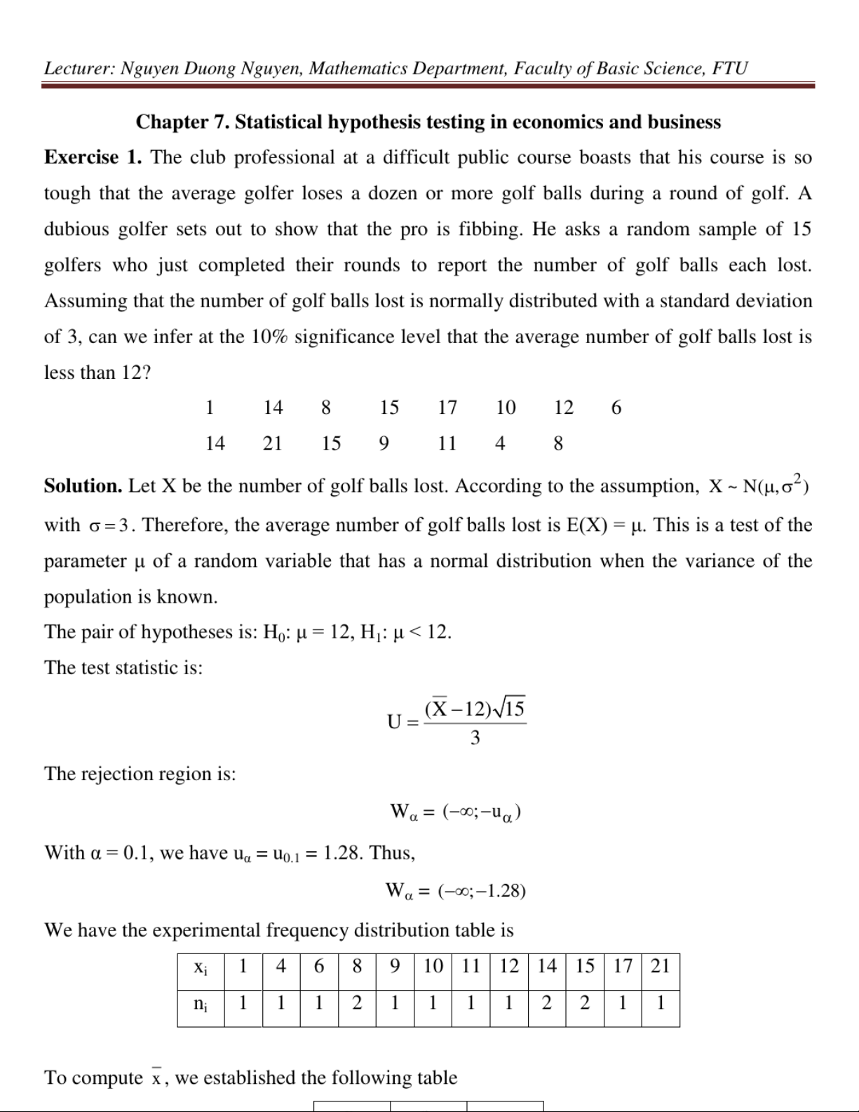Chapter 7. Statistical hypothesis testing in economics and business môn Xác suất thống kê| Trường Đại học Ngoại Thương