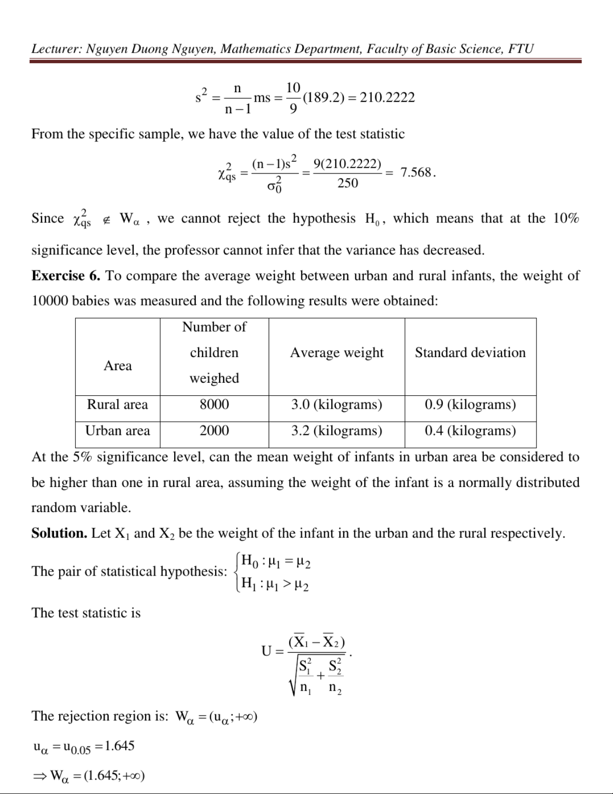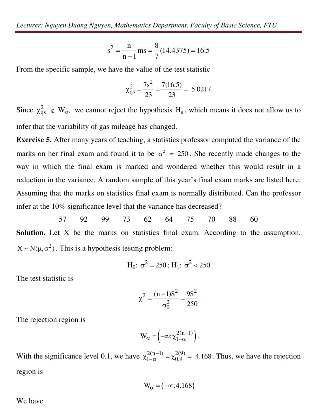 Exercises for probability & statistics môn Xác suất thống kê| Trường Đại học Ngoại Thương