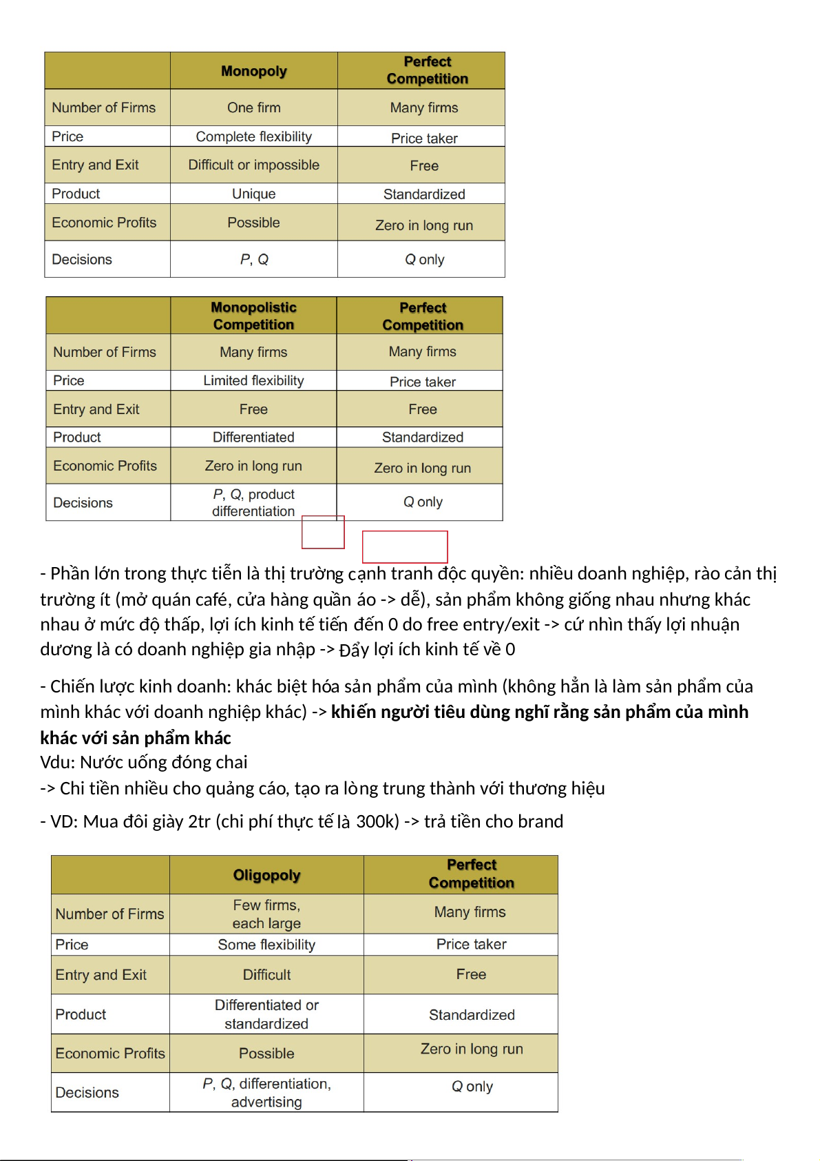 (Độc quyền, độc quyền nhóm, cạnh tranh độc quyền)