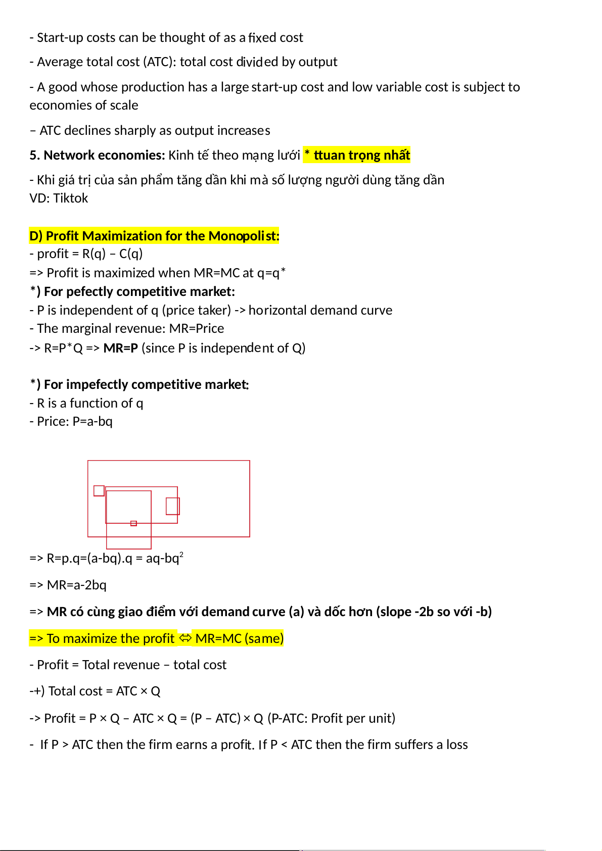 -> Yêu cầu doanh nghiệp đặt giá = ATC uy trì Economic profit = 0)