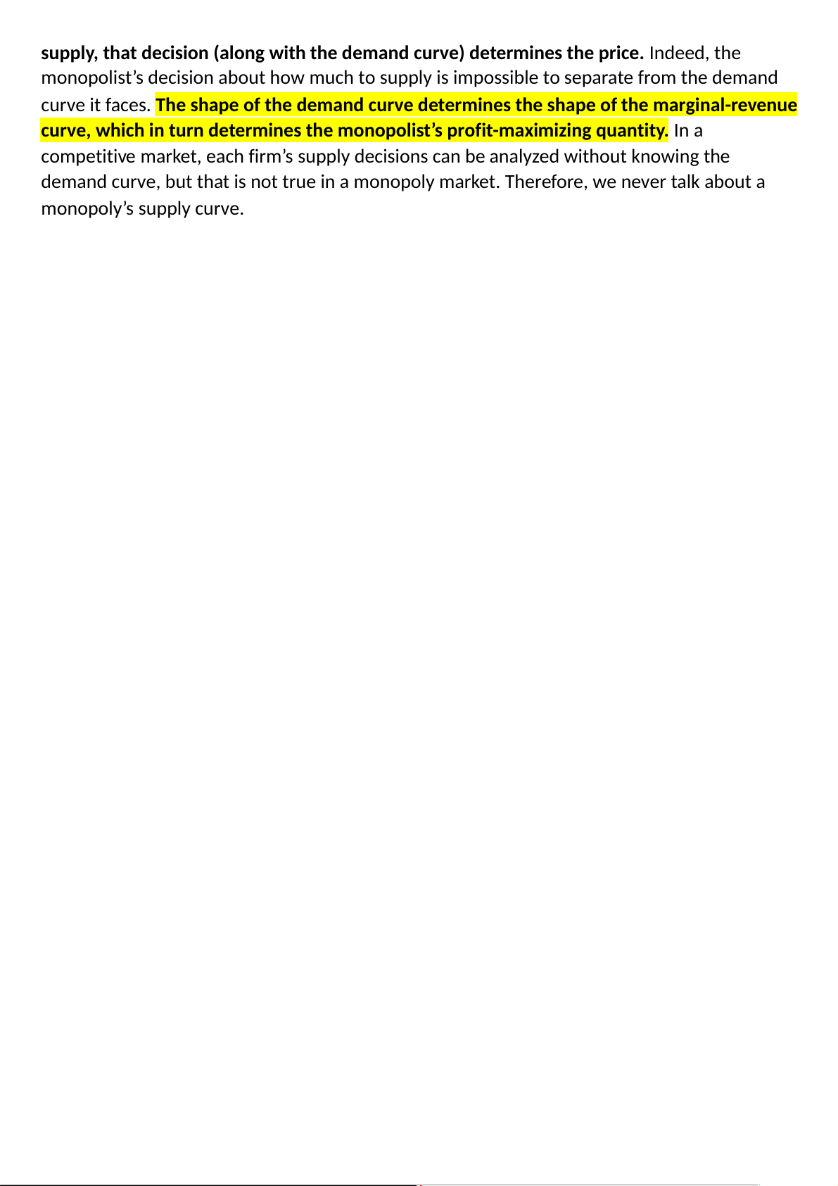 to supply, a monopoly does not have a supply curve. A supply curve tells us the quantity that