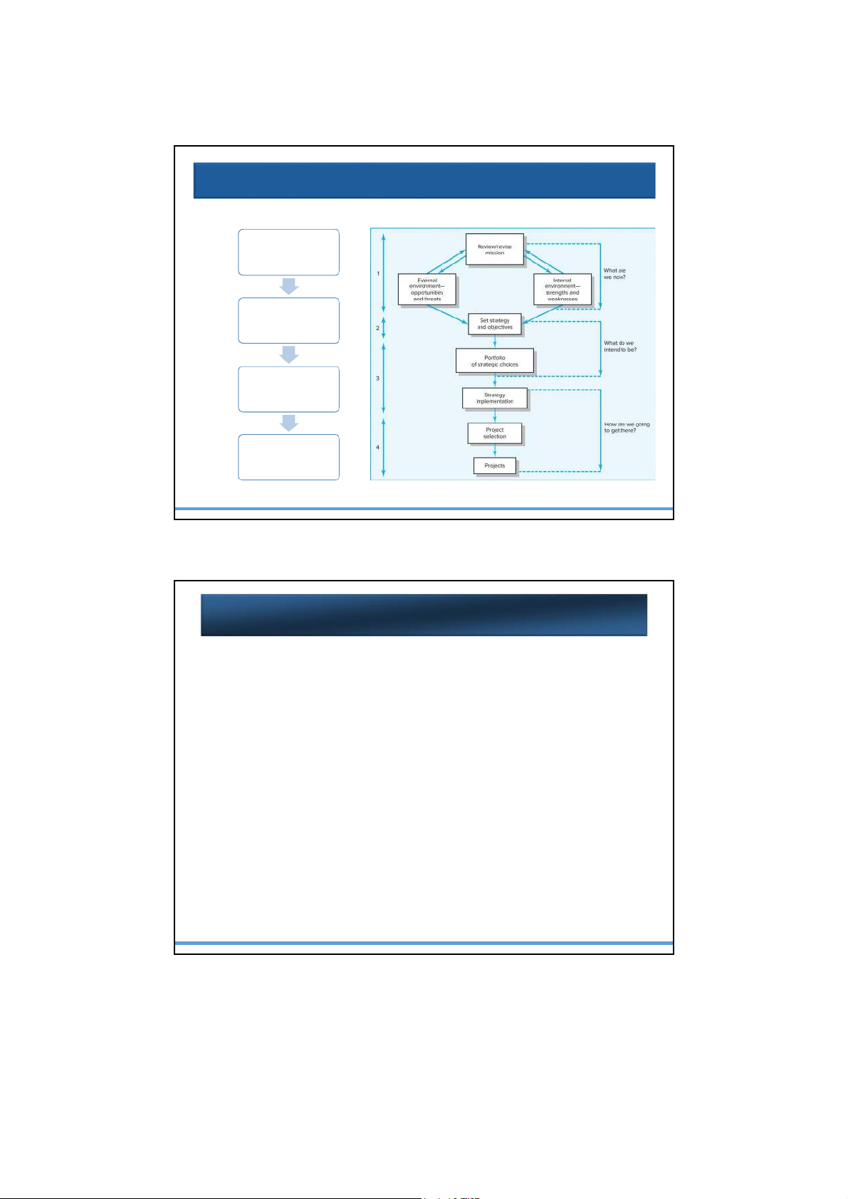 - Project to build an organic-certified processing plant in Dak Lak © McGraw-Hill Education 6 - Project to.... - Project to.... 3 2/11/2025 Strategic Management Process Review and define the organizational mission Analyze and formulate strategies Set objectives to achieve strategies Implement strategies through projects © McGraw-Hill Education 7 FIGURE 2.1 Characteristics of Objectives