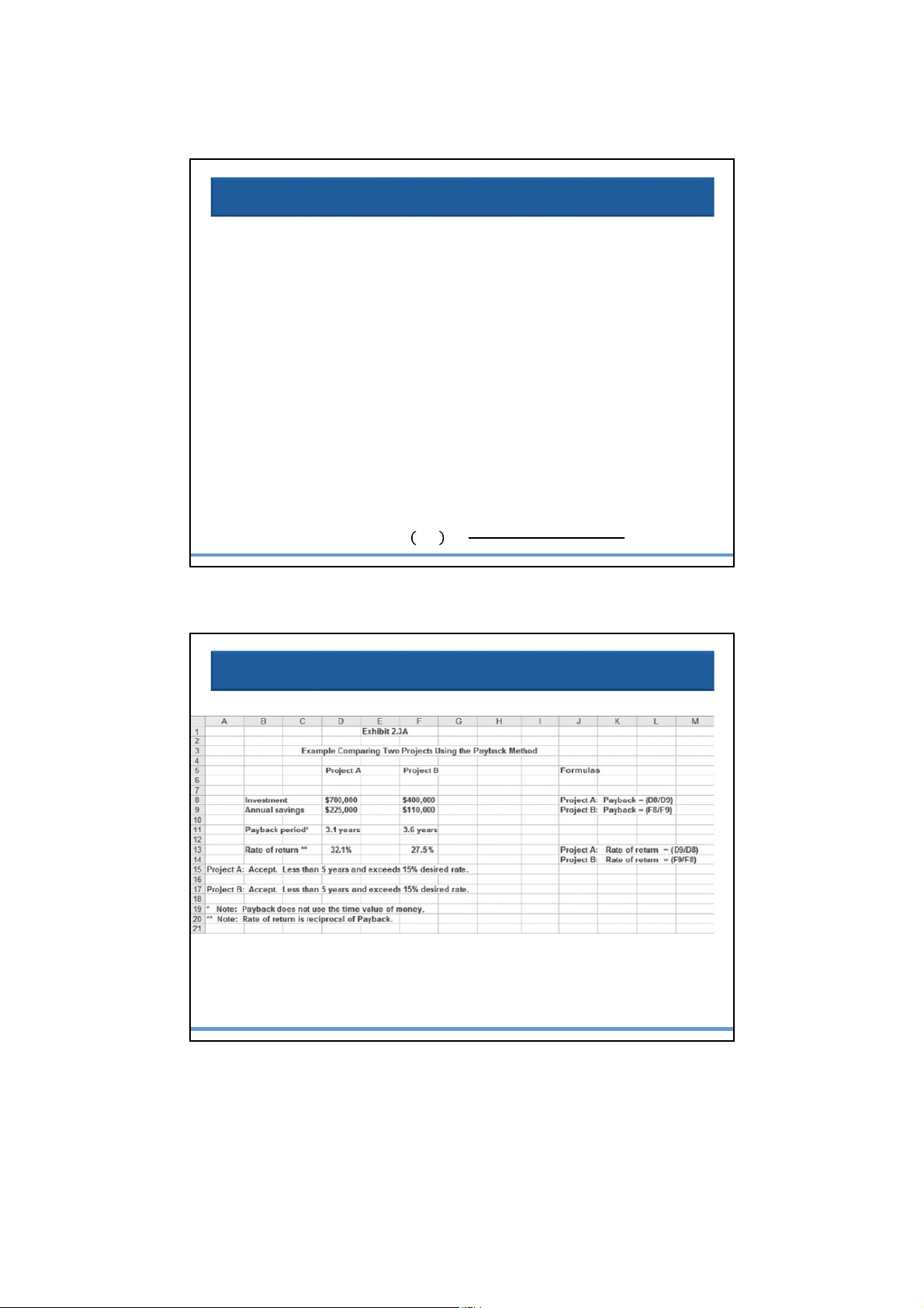 Example Comparing Two Projects Using Payback Method © McGraw-Hill Education 16 EXHIBIT 2.3A 8 2/11/2025