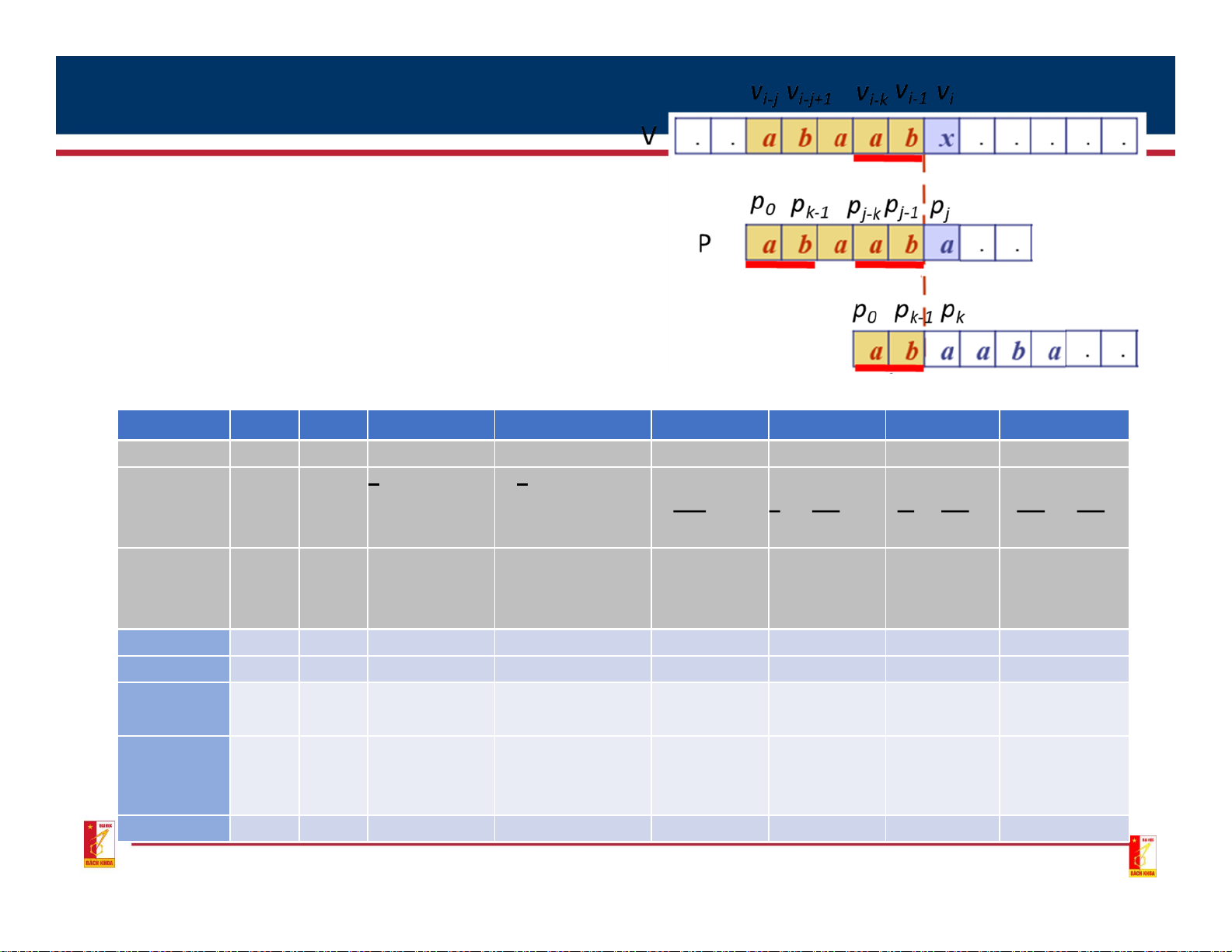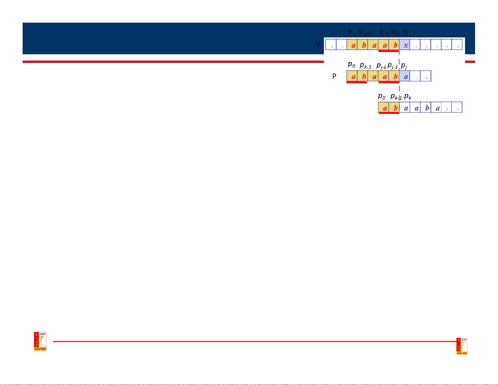 • Maximum possible: k < j, pk≠ pj; • p0p1..pk-1 = vi-k…vi-1; • Properties of k: